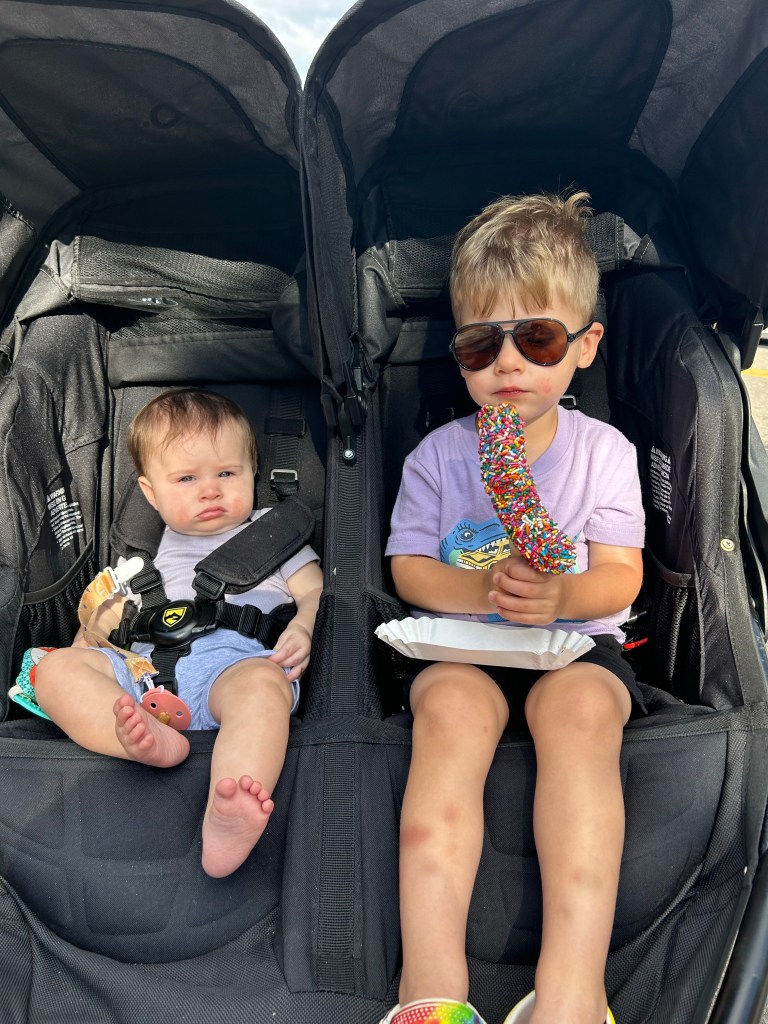 I’ve been so antsy to get Lyds on a two-nap schedule and she finally had a two-nap day on Sunday aaaaand, I realized having your kids on alternating sleep times means no break for you πŸ˜‚πŸ˜¬ Especially if your husband is at a fantasy football draft all day! After breakfast and a piggy back ride that Lydia was LOVING, I took the kids to the farmers’ market and we had a good time. Mom got coffee, Demps got a frozen banana and we got peaches, tomatoes and corn because that’s what this time of year is all about! Got those littles home and Sissy to sleep and then she conked out for two hours so Demps and I got to have some real true one-on-one time πŸ™Œ