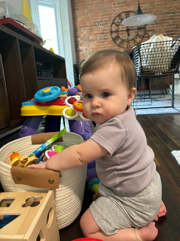 Demps and I ate lunch and then I fed Lyds and she helped me put Dempsey down for his nap, aka the most chaotic half hour of trying to get them to listen to me read books and sing songs and leave the room. He is a maniac when Sis is there for all of that but he didn’t protest when we left. This is usually my time to clean up and reset mentally but instead that little girl got into everything and didn’t want to be still for a second πŸ˜‚ Standing, crawling and getting her hands on everything. It’s exhausting but the best! Demps didn’t crawl until 10 months and then gave it up pretty quick in lieu of walking so this feels like new territory to me. How does one go to the bathroom with a baby on the move?? πŸ€·β€β™€οΈ When Joey got home, I told him to please pretend I wasn’t home but Demps woke up from his nap and wanted to lay on the couch and watch a movie with me and damn, if that wasn’t the sweetest moment of my day πŸ₯ΊπŸ€ Made us all PLTs (aka prosciutto, lettuce, tomato) burgers for dinner and I guess Dempsey is a huge crispy prosciutto fan because he kept running into the kitchen for more! I love a homemade burger so much. Lydia loves a tomato and did pretty good with the beef but she’s not so sure about corn. Ended the night with some Olympic gymnastic trials on TV that had Dempsey doing “huge flips” (aka somersaults) and it was too funny! And after the kids were in bed, Joey and I watched Big Brother.