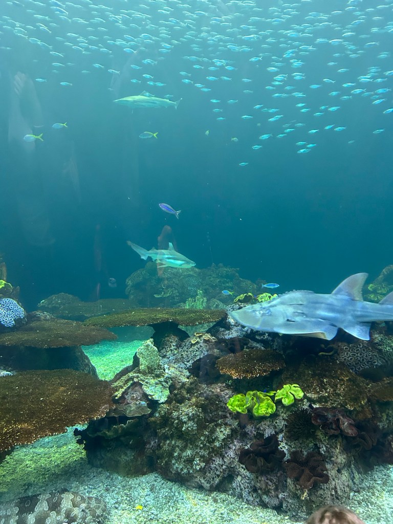 Another rainy day in Chicago! We had breakfast at Southport Grocery and CafΓ©, which came highly recommended by Emily. She said the bread pudding pancakes would change our lives and I think they did! I’ve never had pancakes that luscious inside. I brought home some of the mix for my mom. The guys needed to hit up a convention for a few hours, so the rest of us spent the morning at Shedd Aquarium and it was the perfect rainy day activity. They have beluga whales there! One of them splashed Dempsey and he seemed really excited about it π Afterward, we all grabbed lunch at Cupitol and then Joey, the kids and I headed back to our place so the kids could nap and the rest of the group continued on to Navy Pier. Not the best weather for walking around but it sounded like they made the most of it. We picked them up later on and all headed to dinner. Rainy weather always means ramen for us and luckily everyone else was on board. Service was SOOOO SLOW but Ramen San Deluxe downtown was otherwise very good!