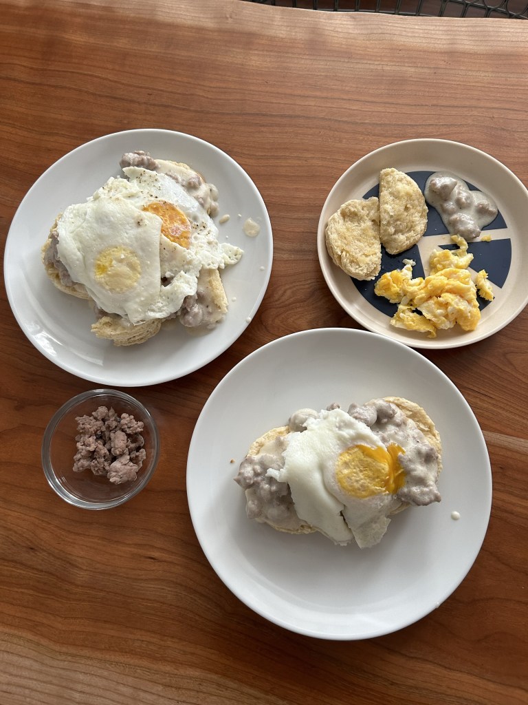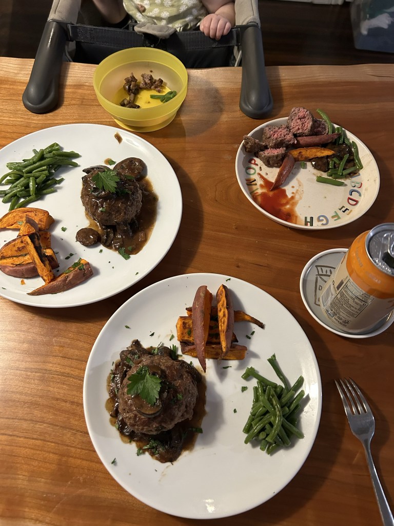 The littles had kind of a rough night but we finally all made it out of bed by 7:30 (late for us 😬) and Dempsey helped me make biscuits for biscuits and gravy. Then he was off to swim and back home for a quick bath before Delaney’s birthday party. Wow, Betsy and Jory blew me away with their decorations! And Delaney looked so cute in her “Holy Cow, I’m ONE” outfit 🤍🖤 Dempsey was running around having too much fun and Lyds was a happy girl. We took them home for naps and then Demps wanted to wreack havoc for the rest of the night, which included throwing his plate across the table 🤪 His loss because Joey made us a really good dinner. Got those kiddos to bed and finished Season 2 of The Bear, which I liked way more than Season 1 even if I have a hard time suspending disbelief a lot of the time.
