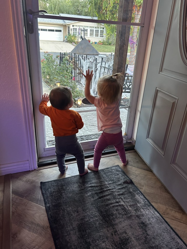 Happy Sunday, Happy October and Happy Birthday to Uncle Adam! 🎉 We walked to Tennyson for coffee, then back home for breakfast, naps, bats and laundry. Joey and I somehow both fit in a run and I made salads for the week while the boys hit up Home Depot for paint. We have a little Harry Potter-style closet upstairs that’s been full of boxes of baby clothes but we cleared it out and now it’s a playroom for Dempsey! Joey got lights for it and they got to work painting it “dark dark orange” per Dempsey’s request. I love how excited he’s been about it! At 4:40, we headed over to Grandma and Chaddy’s for a lasagna dinner in celebration of Uncle Adam’s birthday and it was a really nice evening. They have the front yard DECKED OUT and Dempsey loved looking at it all. The kids all play together so well and it’s just super sweet to watch them together. Lori got trick candles and Dempsey was just so determined to keep blowing them out again and again and again 😂😂 Got home, got the kids to bed and got to watch Big Brother, so I was happy. I hope everyone has a nice week!