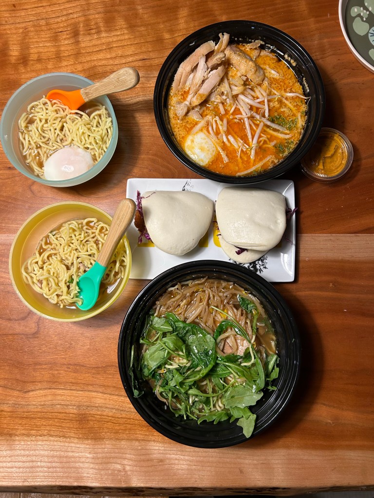 It was so nice out on Wednesday! Dempsey and I walked to Tennyson to pick up our pies and it felt wonderful. Joey wrapped up his work day and we ordered ramen, as always on Thanksgiving Eve. I made sure the noodles were egg free and Lydia chowed down! I love sharing this tradition with my littles 🤍