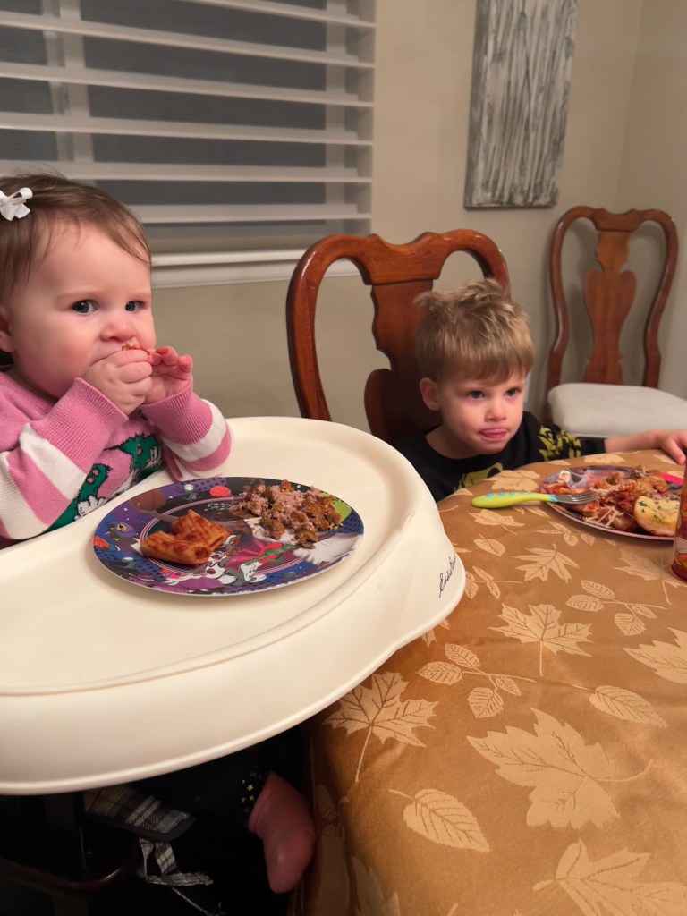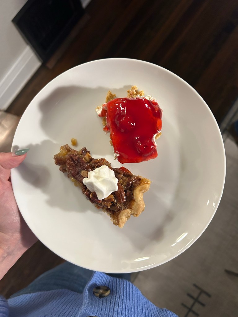Joey and I did the turkey, mashed potatoes, cranberry sauce and gravy and I think it all turned out pretty good. Especially proud of the gravy since it intimidates me every year. We had 13 adults and four kids, so three tables in our not so big living room but what can you do? Felt full of love to me 🤍🤍🤍 Chips seemed to be a hit with Delaney and Dempsey and Lydia and Landon got to enjoy their first Thanksgiving across from each other at the table. Little Miss loves turkey! Everyone had dessert and had gone home just before the kids’ bedtime, so that worked out and Joey and I got to hang out and chat while we cleaned up afterward and that was definitely a nicer way to end the evening than zoning out in front of the TV. What a happy Thanksgiving!