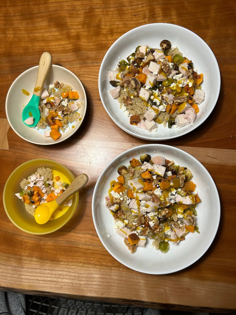 Sunday started off on the right foot thanks to Snooze delivery! I had scheduled it the night before and would like to thank myself for a super easy breakfast. Lydia is suddenly just using a spoon and fork and it’s the absolute cutest! Later on, she took another really good morning nap, so I was able to get all my winter clothes out, my summer/Rockies clothes packed away and some other drawers cleaned out. Then the three of us played outside (including planting some crocuses for the spring!) until it was time for lunch. Our blow up turkey broke, so while Dempsey was down for his nap, Joey brought it inside to fix it. We thought he was going to be so excited to see it in the living room, but when I brought him downstairs, he just said “what is that doing in here??” 😂😂