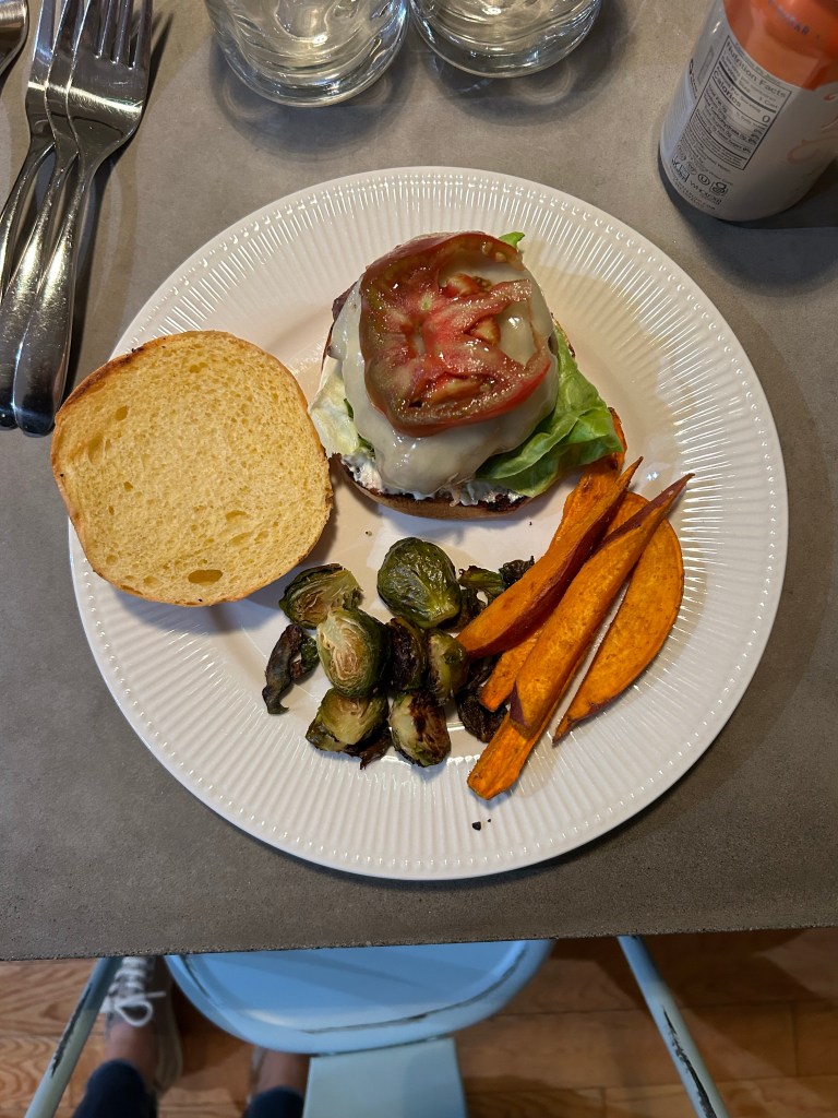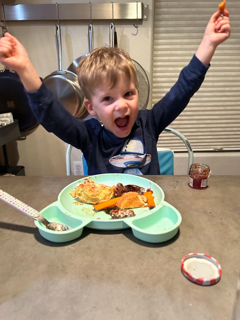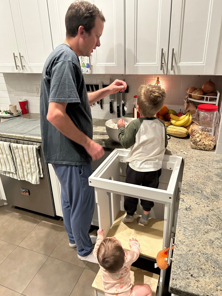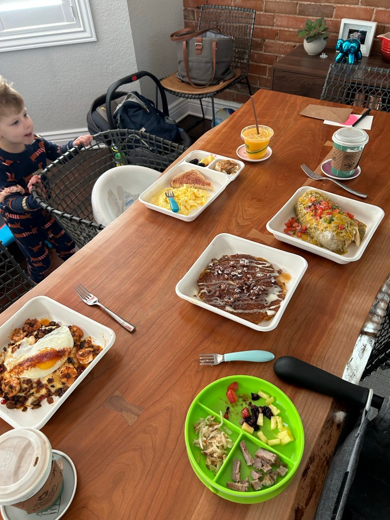 My parents get together with my sister and Wayne most Sundays and my mom always invites us, just for me to decline, but since we’d had so much time to get everything done at home already, I said yes! My mom had sweet potato fries, roasted Brussels, and burger patties all ready to go and then my sis grilled the burgers to perfection and we had a good good dinner 🤤 Dempsey got hold of a tiny jar of jelly halfway through his meal and then slathered everything in it. In that photo, he was yelling “JELLY!” That boy 😂😂 After dinner, Lydi “helped” Grandma with the dishes and then when Dempsey was making my parents run laps through the hallway, I basically ordered us all to leave and go home. It was so nice having someone else cook us Sunday night dinner and get home to no dishes or clean up! Maybe I should say yes to my mom’s invitations more often 😉