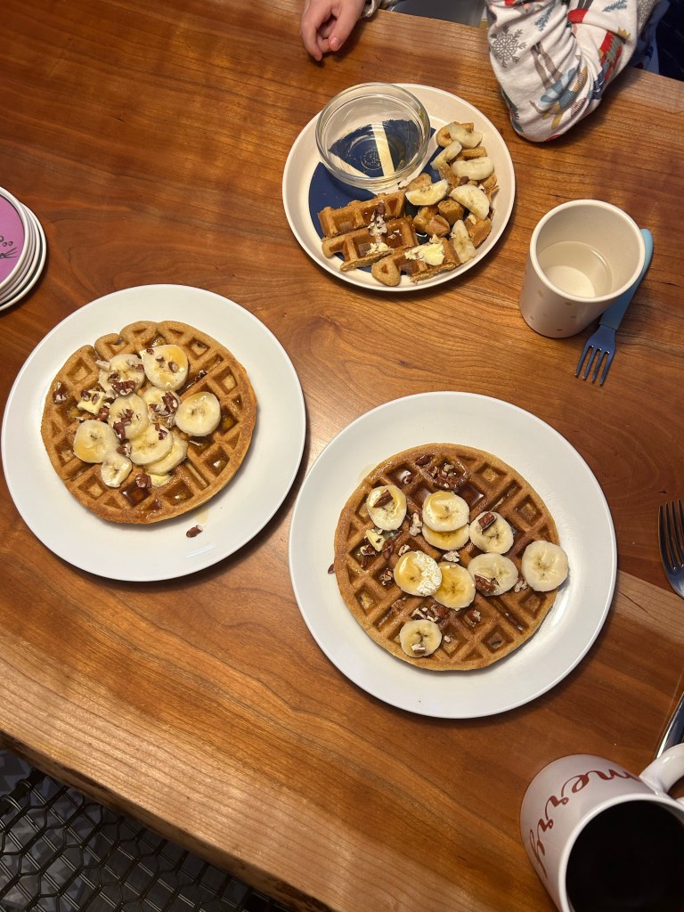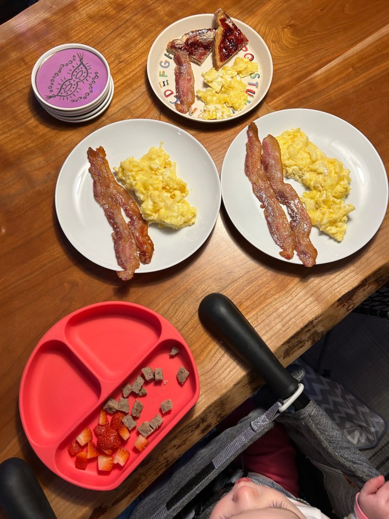 We woke up to snow on Sunday and I had no idea it was even coming! Mason’s birthday party was that morning but I didn’t think the kids (or their coughs!) should be there, so we had to miss this one and it was such a bummer. Dempsey made a video for Mason though 😊 We had a simple egg and bacon breakfast, I put Sissy down her nap and then bundled up and walked to The Cottage Bakery for pastries. Jill sells baked goods from her lovely little home every weekend and we’ve lived blocks away and never been! 🤦🏻♀️ When I showed up, there was a line and if that’s not a good sign, I don’t know what is. Grabbed a pain au chocolat, an apple danish, a morning bun and a loaf of sourdough and it was all amazing! Dempsey asked for another morning bun for the rest of the day 😂 Naps and adult chores took up the rest of the afternoon and then when Dempsey was up, he and I took a trip to Target for a gingerbread house. They even had a preconstructed one! He was so excited to decorate it as soon as we got home, then spent seven minutes actually doing it — most of which involved eating candy — then ran off. Nothing like decorating a gingerbread house by yourself while your children play in another room 😅 Leftovers (plus that sourdough!) for dinner then bedtime for the kids, SNL for us and bedtime for me while Joey worked. Hoping it’s a much better week for us — the silver lining is that the kids have slept amazing three nights in a row, so Joey and I have at least been super rested while tending to them! — and I at least make it into the office once 😉 Happy Monday!