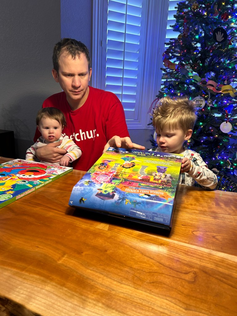 Well we had lots of fun things planned for the first weekend of December — KBCO Studio C CD release, pictures with Santa, the Parade of Lights, Mason’s birthday party and a CU basketball game for Joey, Dempsey and Grandpa Steve — but instead, we stayed home all weekend with croup! The kids came down with it Monday night and needless to say, it was a looooong week. Saturday was their worst day but they were both feeling much better by Sunday, so I am hopeful we will back in the game by NEXT weekend because we have lots of catching up to do.