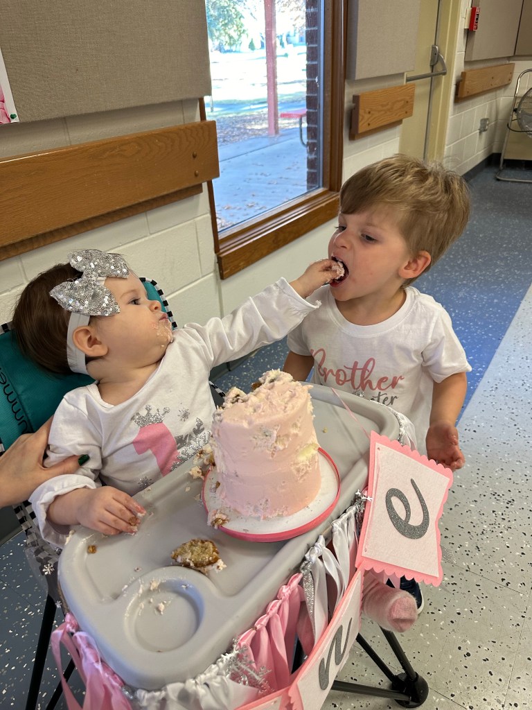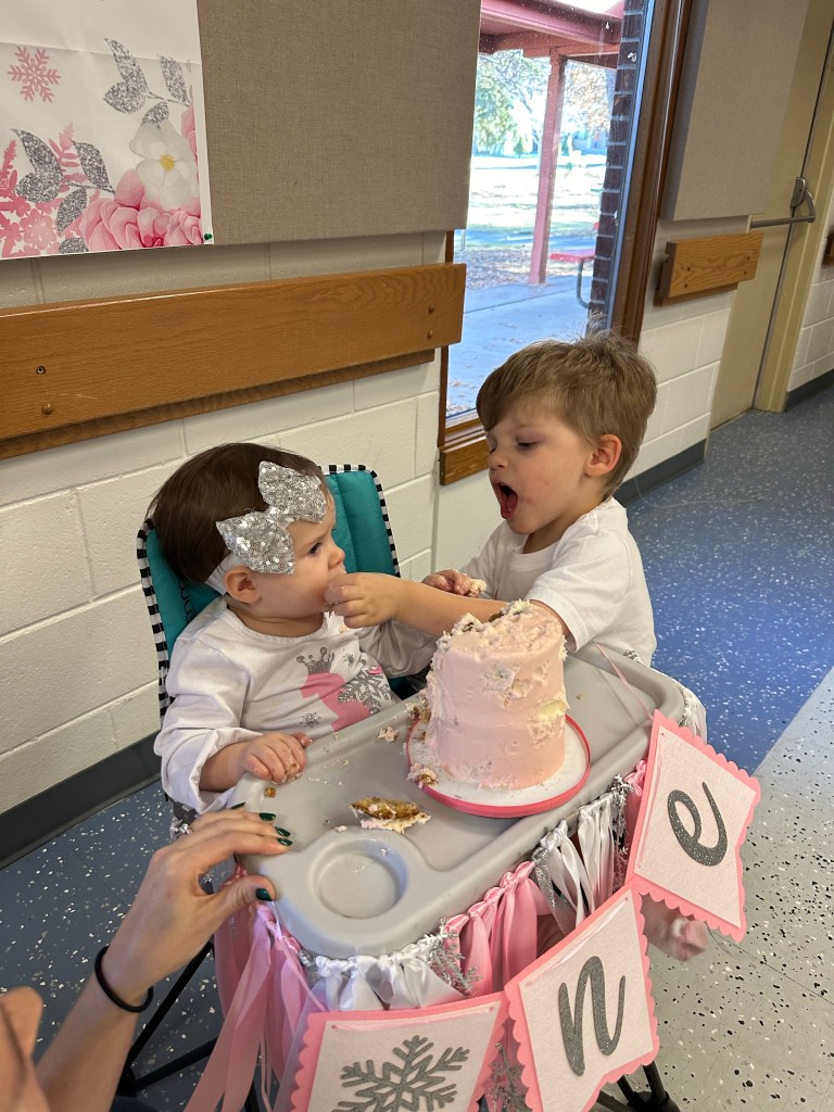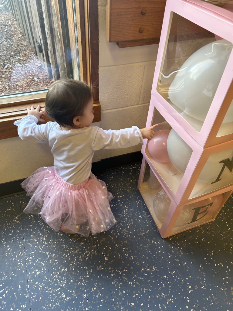 Sunday was party day for our Lydi! We had things organized and packed as best we could and then my parents came over to hang with the kids, so we could decorate the space and I definitely wished we’d had more time/had put things together more ahead of time but I think we had it mostly set up before people started arriving. We had such a good time! Special thanks to my mom for making ALL the red velvet cupcakes and to Lori and Chad for helping set up. Lori did such a good job on the dessert table 🤍 Wasn’t sure how Lydi would do with the cake considering her rejection of all sweets, but turns out all babies love frosting. Dempsey was more than ready to help light the candle, blow out the candle and eat the frosting 😂