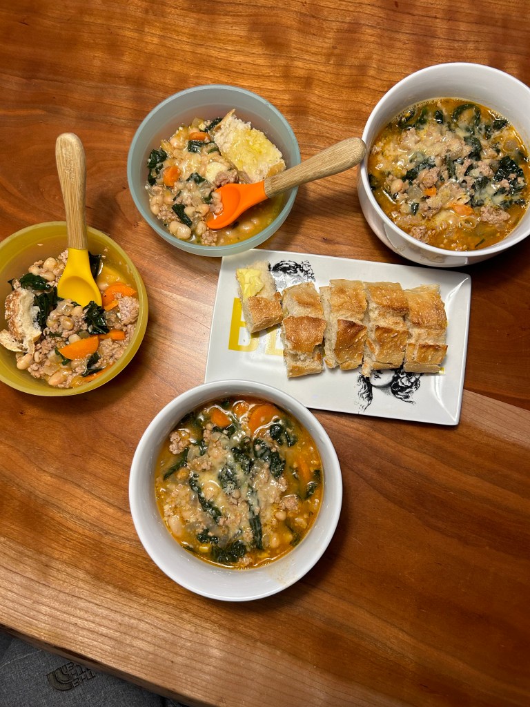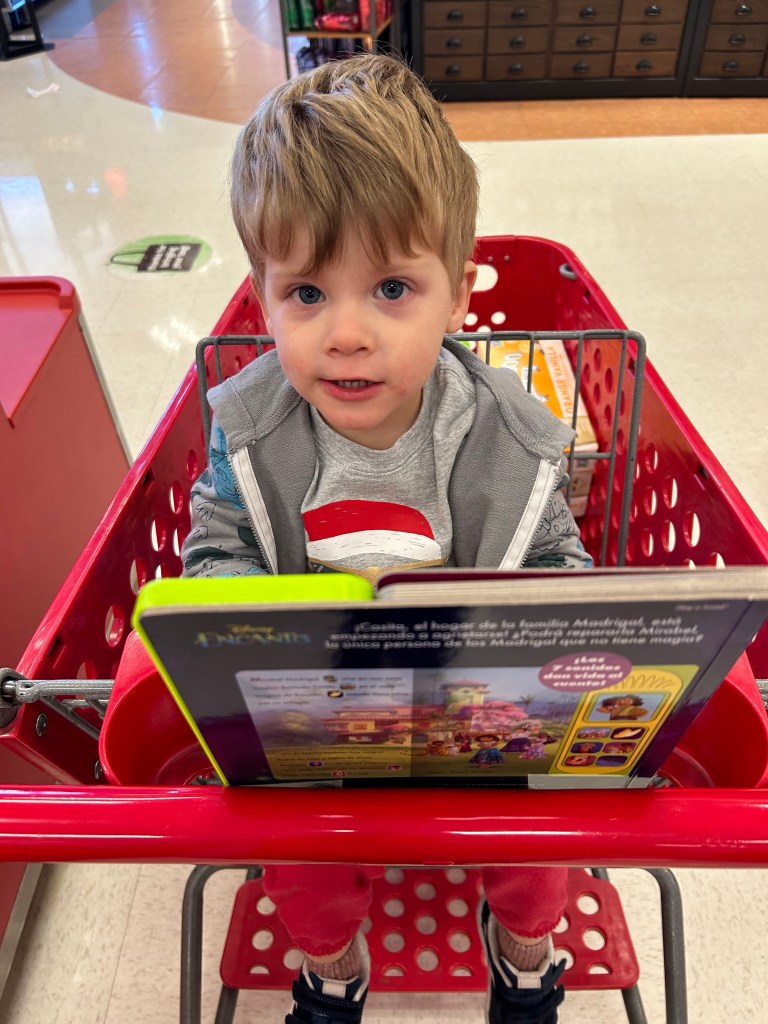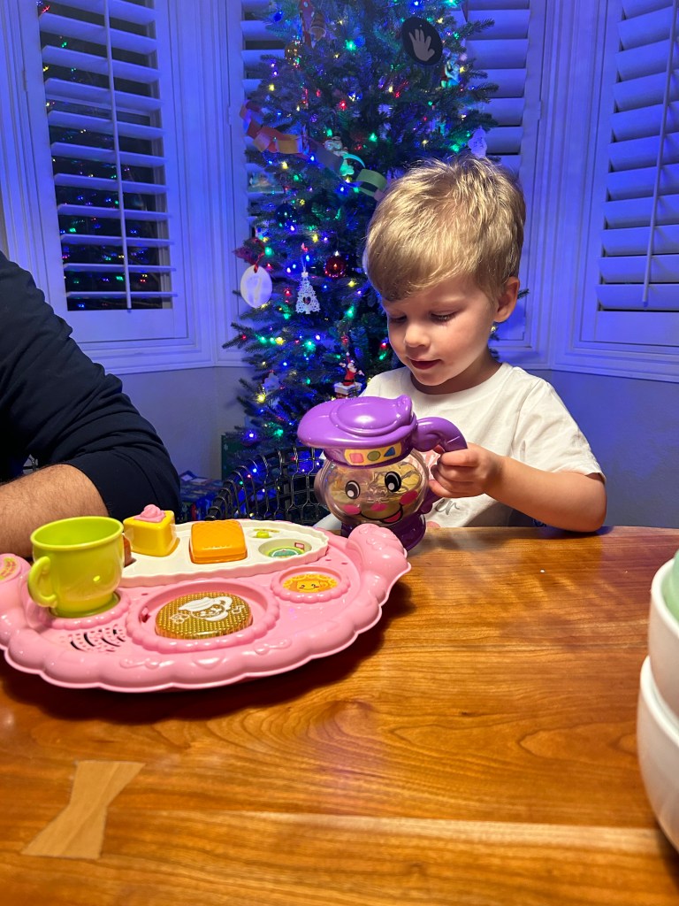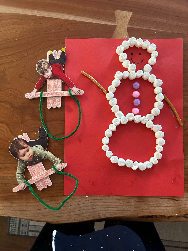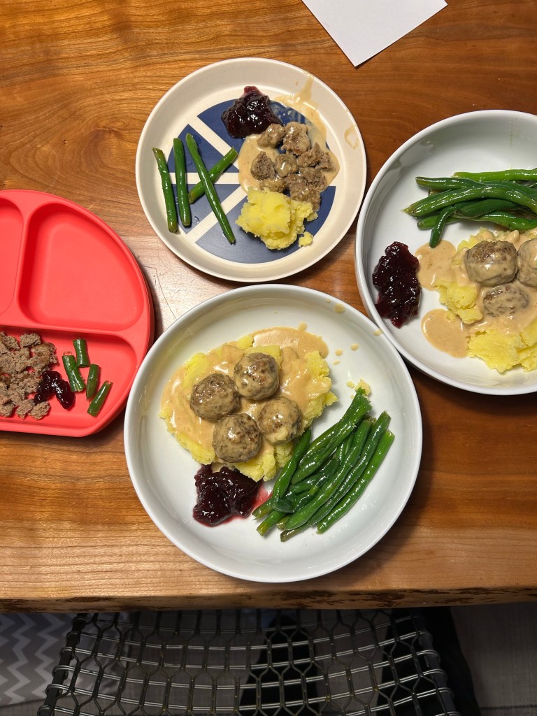 It was a busy Saturday. First up… pancakes! I made Lydia’s into a mini waffle since she’s shown more interest in a crispier texture and I think she actually ate some! Afterward, I took Dempsey to Target to pick out a birthday present for his sister — two books and one for himself, of course — and then he set up his “computer” for “work” and kept telling me not to bother him 😂 Headed back home to swap places with Joey, who took Dempsey to his swim lesson and then we all met up at Edgewater Public Market for our Santa visit! Thought there was a chance Lydi might cry but she just her stoic face on instead. Dempsey told Santa he wants an octopus stuffy and his own phone for Christmas and it’s starting to feel like Joey and I should have waited until Christmas Eve to buy presents since Dempsey keeps coming up with new stuff every time he’s asked what he wants 🤪 Had lunch then went home so Dempsey could protest his nap until we eventually gave up. It was a long evening, guys! We did have a good diner and watched some of A Christmas Story before much bedtime antics but eventually they were both in bed and asleep.