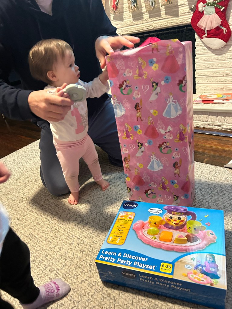 My parents took the kids back home and put our party girl down for her nap — no luck with the other one though — and once she was back up, we started opening presents, took a quick break for dinner then finished opening the rest. She got lots of cute clothes, books and just a handful of toys, which was perfect! I think Dempsey thinks all those toys are for him though 🤔 I really cannot believe our daughter is a year old already. This morning, we had her open presents from Joey, Dempsey and I, plus my mom is over on Mondays and got to see her open Bitty Baby in person! We have evening plans over at the Stanley Marketplace, so it should be a fun fun day. Happy Birthday, my Lydi girl, we love you so much! 🤍🤍🤍