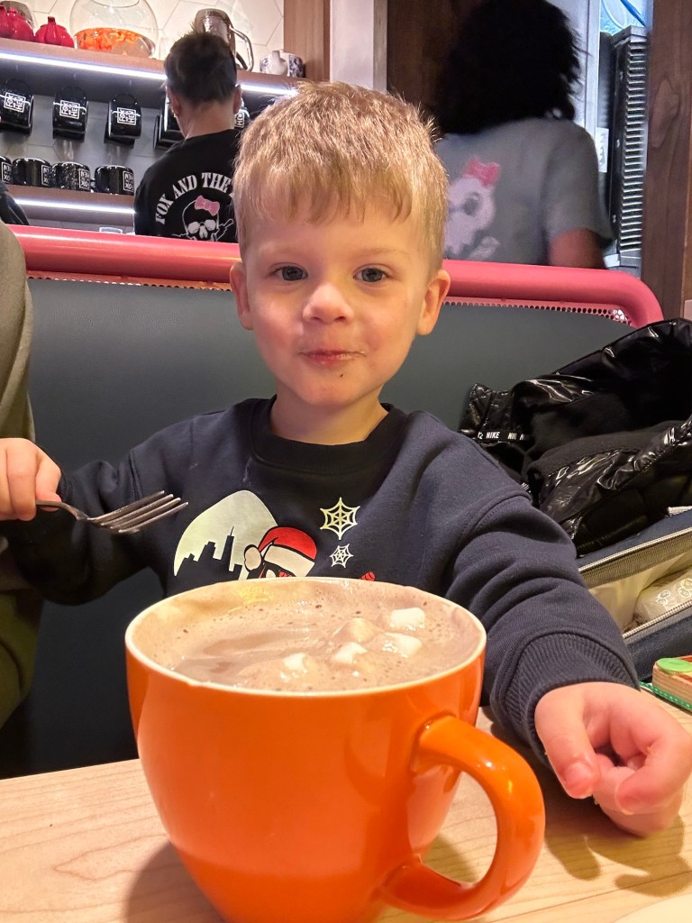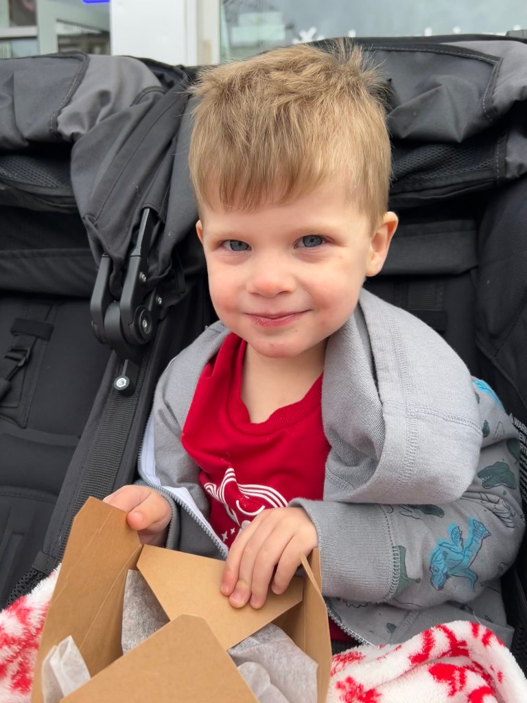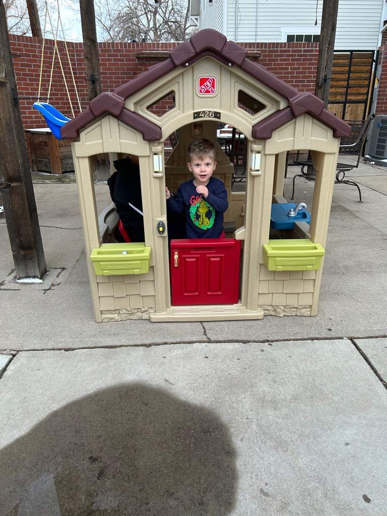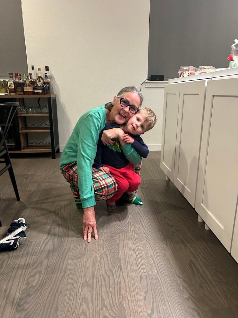 Christmas Eve! We took our little gnome and hot chocolate lover to breakfast and I always wonder if people without kids are looking at us like we’re insane to bring two small children out to eat. It’s just being climbed on, keeping knives and glasses out of small hands and trying to eat your meal while also holding or feeding someone else 😂 We must be crazy because we just keep doing it! Afterward, more playing with the car toy, then Lydi took a nap and Dempsey helped me make cookies for Santa ❤ Thank goodness we weren’t hosting anything at our house because I let my 3-year-old have full control over a shaker of sprinkles and I’m sure you can imagine what the counter looked like afterward. At 4, Grandma Lori and Chad came over to surprise the kids with their Christmas present. Dempsey was so excited and so am I!