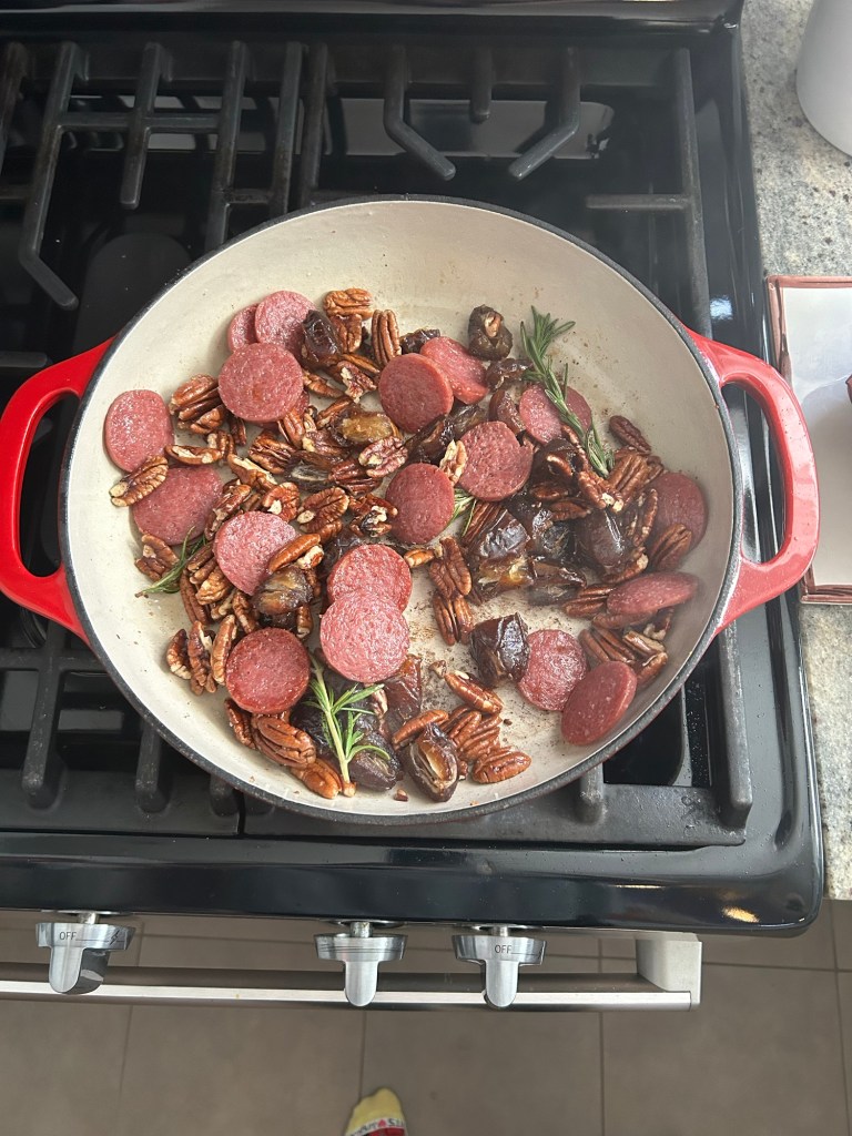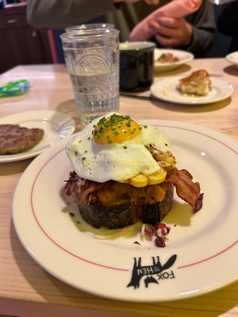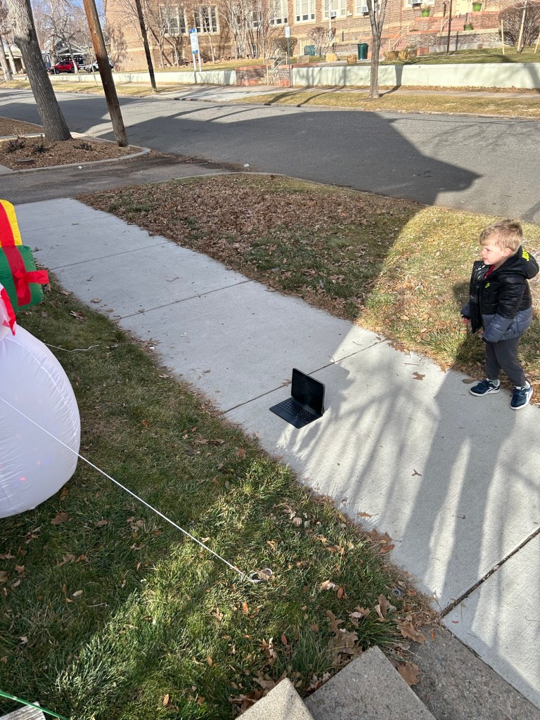 Started Saturday in our normal way with waffles, except that neither of my kids — even my waffle lover — ate it. I had made it with the coconut yogurt we’ve been buying for Lyds and ironically, it was one of my favorites we’ve ever made! The rest of the day involved letting Dempsey turn on and off our inflatable snowman, walking to Tennyson to pick up pies with one child and making cranberry sauce with the other. At 3, we headed to Grandpa Steve and Lorna’s.