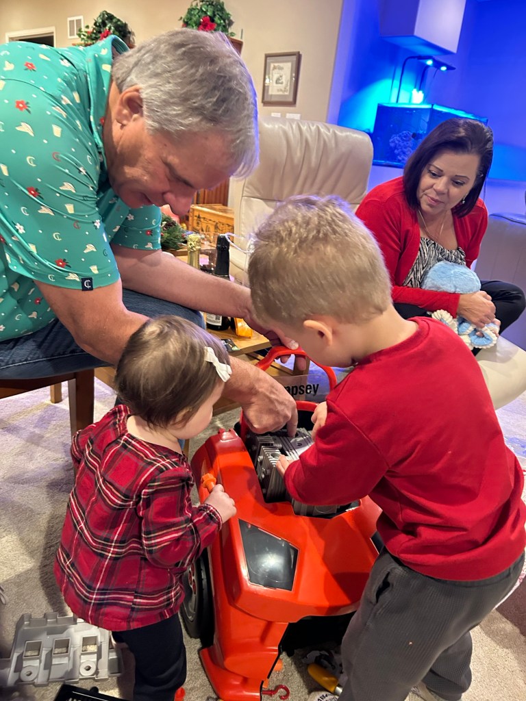 We had a really nice evening celebrating Christmas with them 🤍 Lydia tried Jell-O for the first time and was a fan! And we all got some really nice gifts. Dempsey got a car hood toy that both kids were very interested in all night.
