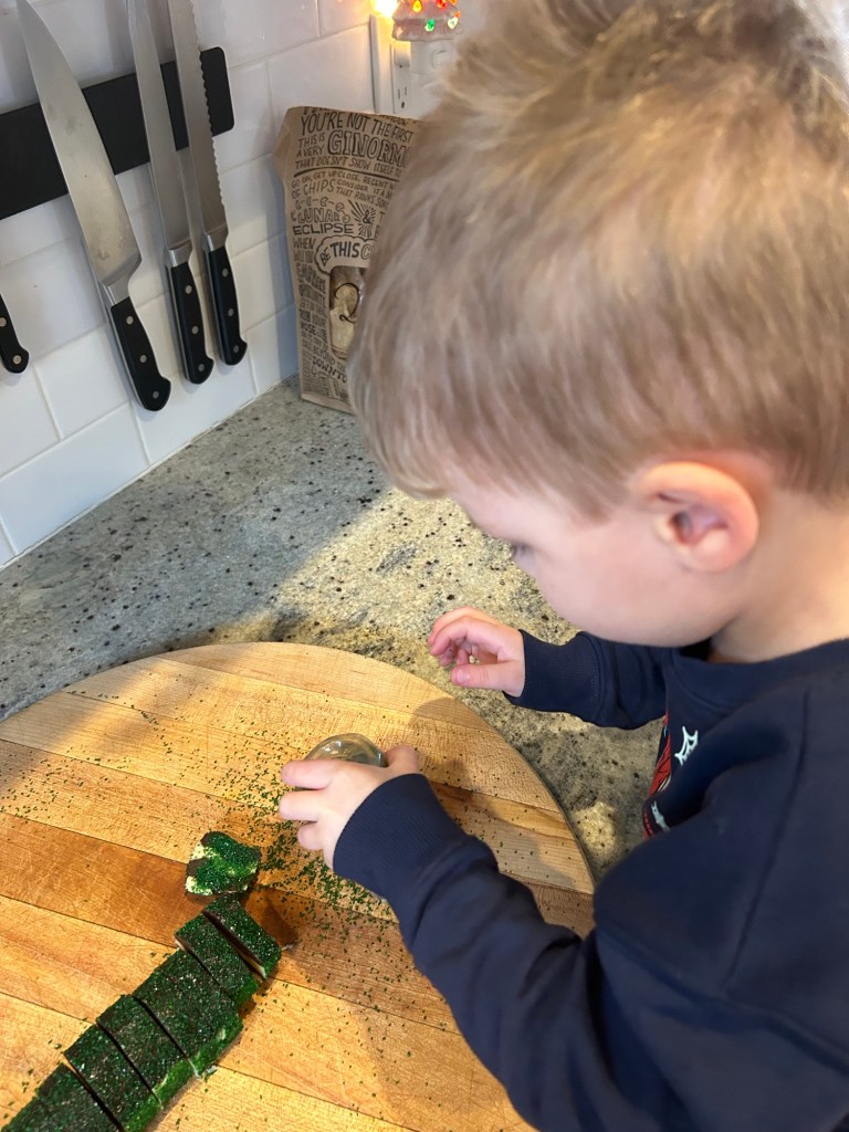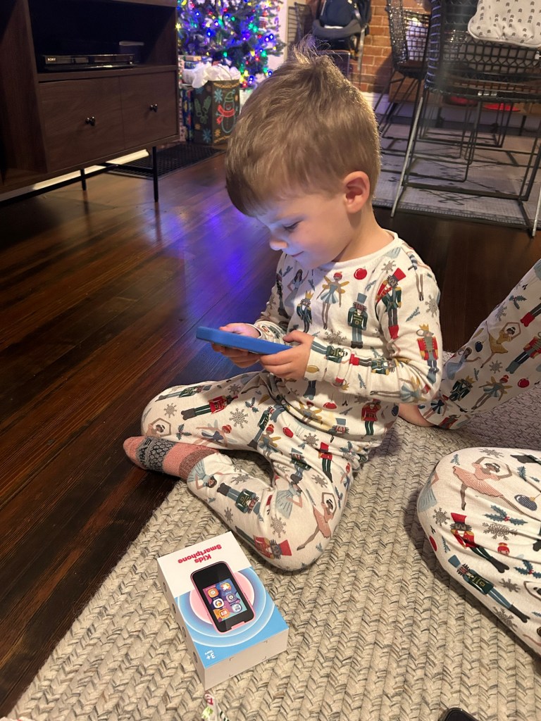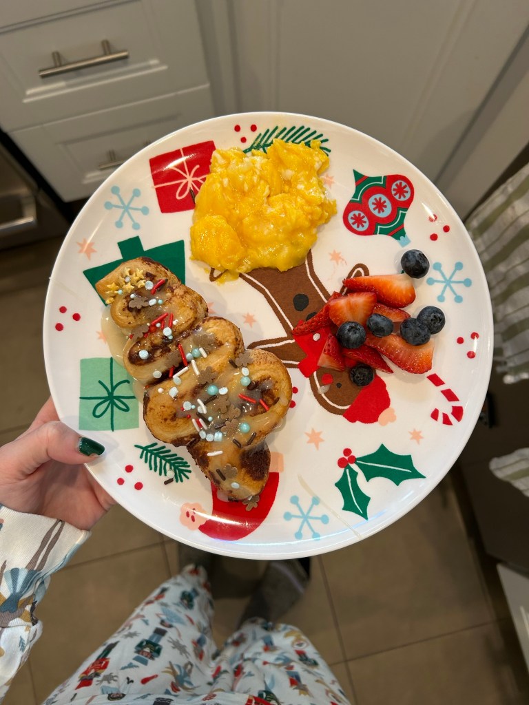 Lydi woke us up at 6 AM on Christmas morning and then Dempsey wandered into our room. I think we’d better get used to early Christmas mornings 😉 Got everyone downstairs and then tried our best to coax Dempsey into opening presents?? Who is this kid?! He opened his little phone first and was gone 😅 He also got a leaf blower, a Beatles Yoto card, new snow boots and kinetic sand. Lydi got Nikes, a hat and gloves and the cutest little tea set! Once the living room was good and destroyed, I got to work on breakfast. While I wish I had time to make cinnamon rolls from scratch like in years past, that’s just not how I wanted to spend my time off this year. Annie’s cinnamon rolls in a can to the rescue! I saw someone make them into cute little Christmas trees on Instagram and decided to give it a go. They turned out so cute and super easy to make! Dairy and egg free even, so Lydi could have a single bite before pooh-poohing them 😂 Spent the rest of the day playing with our new toys — Lydia got a keyboard from my brother and sis-in-law and I think it was everyone’s favorite thing! — and watching Christmas movies. It was the best!