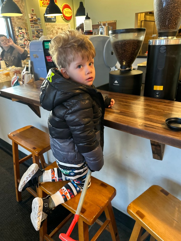 I got up with both kids and took them downstairs at 6 on Saturday, so Joey could get some more sleep. They helped me start coffee and waffles 🥰 We had a make up token for Dempsey’s swim lesson while we were on vacation, so we rescheduled for 9:30 that morning. He had a great time! Afterward, I took him to Starbucks for the first time to get a cake pop. He definitely had a great time with that too!