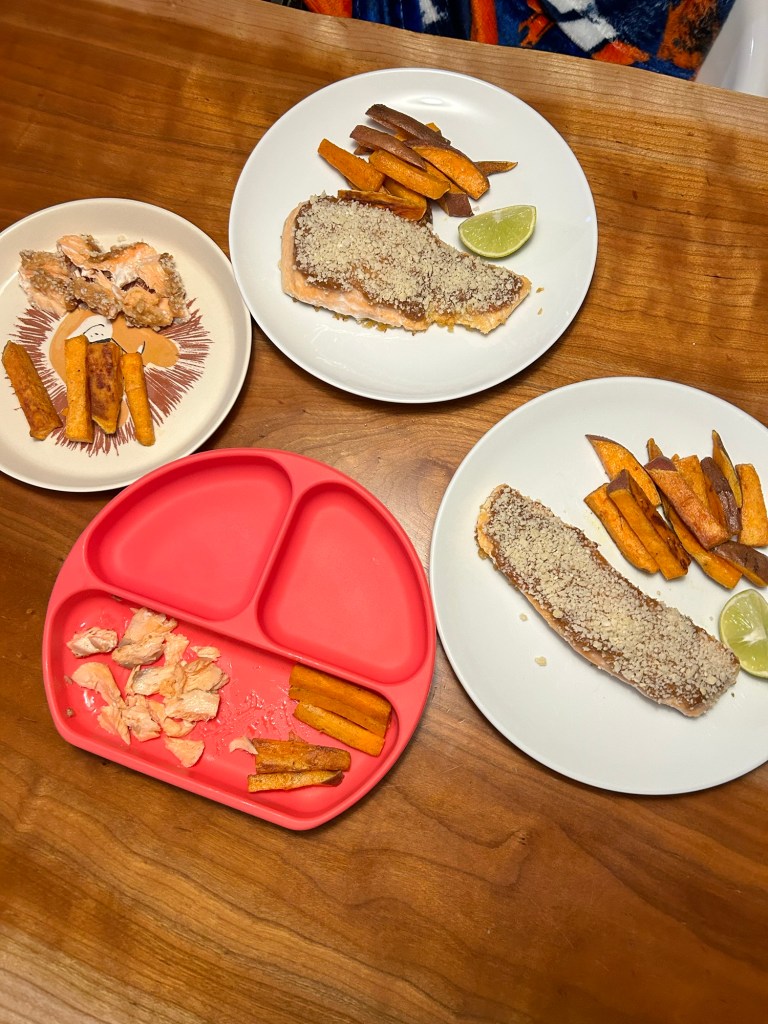 Dempsey helped me clean the oven door and the wire racks after everything had cooled down and it honestly is so much cleaner in there, despite taking three times as long as it probably would’ve if I’d done it on my own 😂 This boy loves cleaning! Aunt Bean and Uncle Wayne came over to bear witness to the insanity of two children — especially when they were both walking around eating a muffin and leaving crumbs everywhere — and visit with Joey and I as well. We hadn’t seen them in too long and it was so nice having them over. After they left, I made us all some salmon and sweet potato fries for dinner. Dempsey had protested his nap and was literally falling asleep at the table, so he was in bed early and easy. Sissy too, so Joey and I nearly had enough time to watch an entire 2.5 hour movie! More on that later 😉