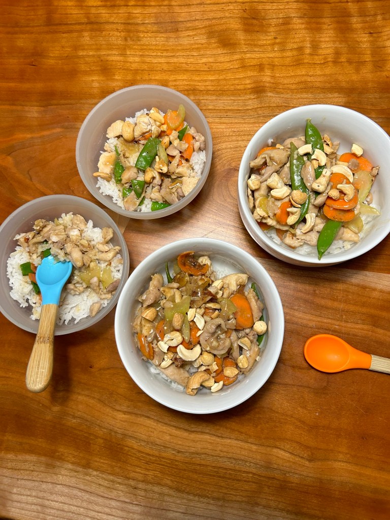 We had a pretty simple Sunday. Joey and Dempsey picked up biscuit sandwiches for us three and a hash brown for Sissy. He had a bit of a cry over how his kept slipping apart. Poor buddy! Joey was feeling pretty rough, so we decided it would be best if he didn’t join us at the celebration. I got our salads made before we took off, thanks to a little helper, who stuffed in all the salad greens and put the lids on the jars 🥺 It was nice seeing everyone at the brewery and I think Elliott would’ve loved the donut keychains and big 5 balloon they had for her. Back at home, Lydia took another nap, Dempsey and Joey watched a movie and I made us cashew chicken for dinner. I can’t seem to not make a mess with oil when I use the wok but the meal always turns out good! Got the kids to bed and finished Anatomy of a Fall. I thought it was very good. I could see how someone might find it slow and uneventful, but I thought it was completely fascinating and complex. Sandra Hüller was incredible and so deserving of that Best Actress nomination. In other news, Joey has slept on the floor of Dempsey’s room the past two nights, while I sleep with Lydia (in her crib) in our room, so three of us have slept good 😋😬 I know this is just a phase, but I’m hoping it gets better sooner rather than later.