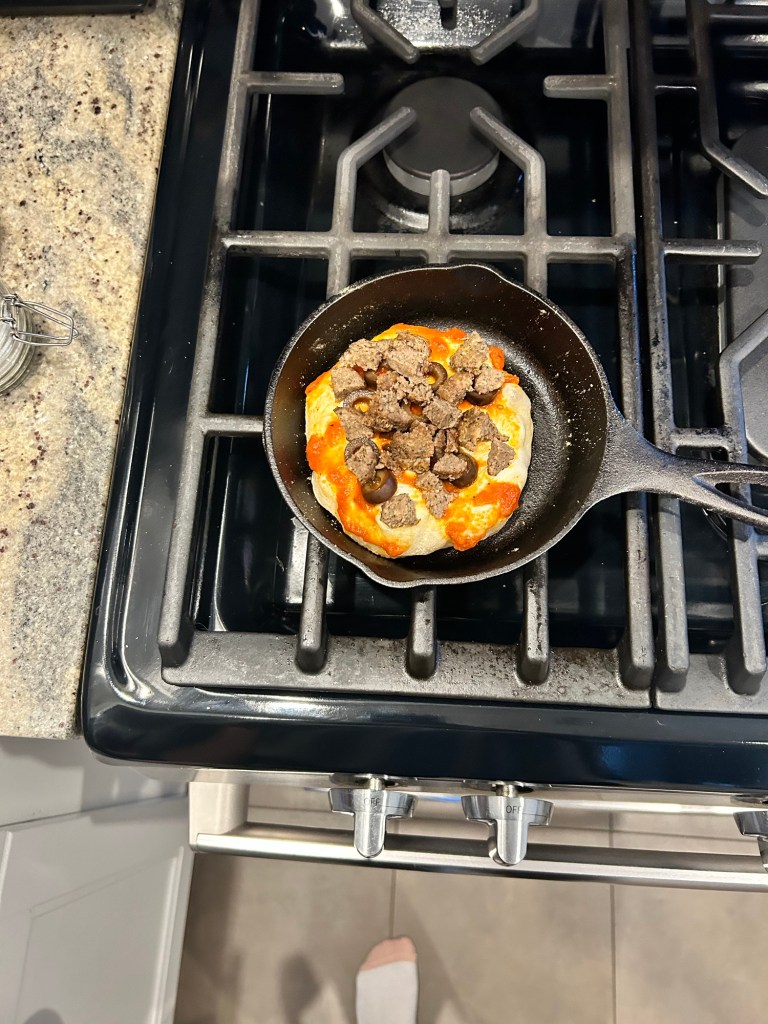 Up bright and early for waffles and a fort! Joey made us some whole wheat & oatmeal waffles and I thought there were so good. And he made a fort for Dempsey that I later maybe took my cup of coffee into and enjoyed a moment of peace π Before Lydi’s nap, we played outside and I spotted a first sign of spring when I noticed a tulip coming up! We took the kids to a new park that afternoon and though it was busy, they had a really good time. There was even a hill for rolling down and Dempsey had fun with that. Made cast-iron skillet pizza for dinner — how cute is the mini skillet for Lydia’s mini pizza?? — and “watched” the SAG Awards. The thing about watching an award show while your kids are awake and in the room and that you don’t really take in much of it, but I did see Steven Yeun’s win, Pedro Pascal’s speech and Lily Gladstone’s little head pat on her trophy and loved all of it. I’m still trying to figure out why Christopher Nolan was there though π€