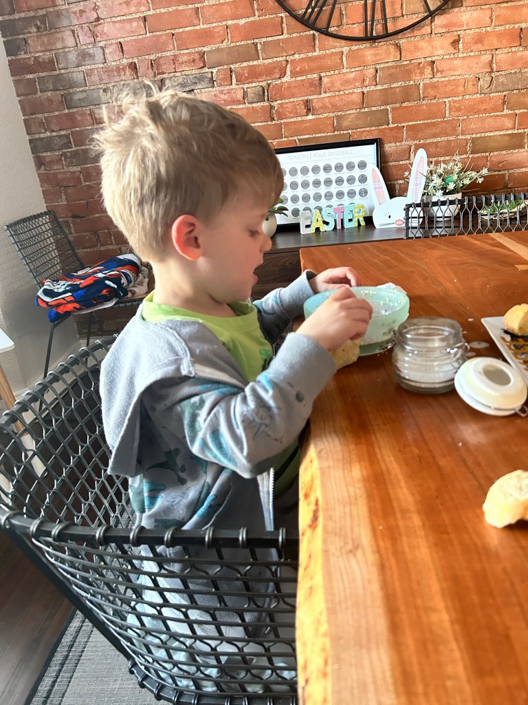 Started Sunday with breakfast sandwiches Γ la Joey. I had mine on some of the sourdough we bought the day before and it was amazing! Afterward, I hung with the kids while they played, then later on took a shower and made salads for the week. Felt nice not having much of an agenda for the day so I could do stuff like lay in the closet-turned-playroom upstairs with the kids falling over me and the string lights blinking me into a stroke up there ππ But for real, it was fun if not also chaotic.