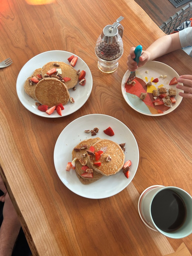 Up and at em for Saturday morning pancakes! My girl passed her baked egg food challenge last week and I thought it would mean we could make pancakes and waffles with egg but turns out those don’t constitute as “baked,” so we’re still on that vegan train and I honestly don’t mind. These were really good! Afterward, I headed into Louisville to see my mom for a massage and Joey and the kids played outside and ate lunch. That night, Dempsey and Joey made us ricotta gnocchi and it was so delicious. As a bonus, Dempsey actually ate dinner! Put those littles to bed and fired up Sicario but we didn’t finish till Sunday, so I’ll save my comments 😋