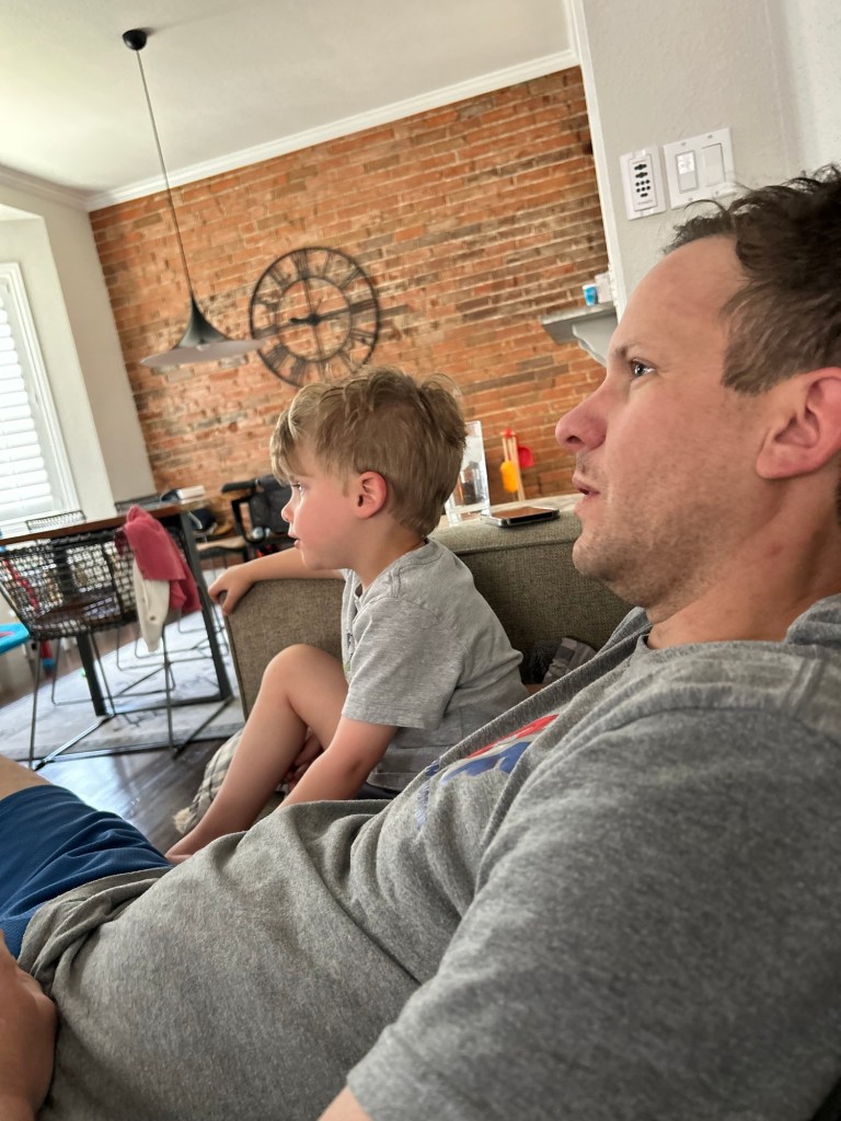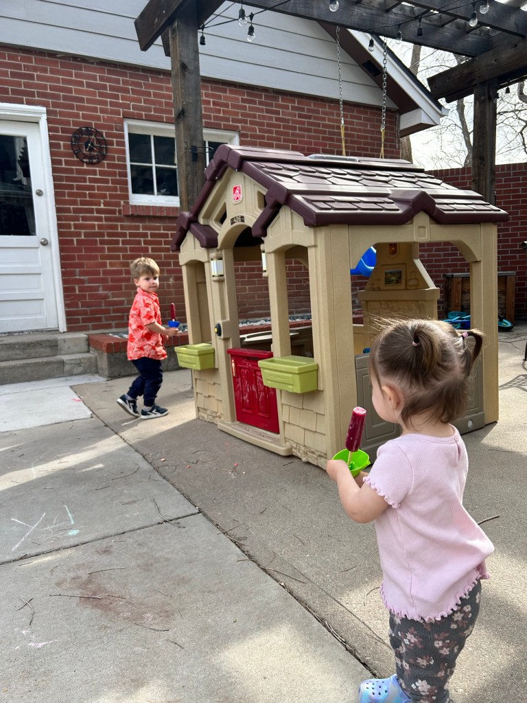 After breakfast, I loaded them both up in the stroller and walked to the park so Joey could have some time alone to work in our back yard. I can’t remember if I mentioned this, but we are removing our veggie garden (three years and we just can’t get anything to grow back there) and making more room for the kids’ toys. They were so fun at the park. Dempsey was/is so cautious but is finally going down all the slides and up most ladders/stairs, while his sister is ready to just walk straight down any slide and off any drop 😬😅 He loves going down the slides with her on his lap 🥺 And after they were so well-behaved at the park, I attempted to take them to the coffee shop but after a game of chase that was fun for one of us and embarrassing for the other, I bailed and took them (kicking and screaming, in Dempsey’s case) home. Lunch for all, nap for Sis, quiet time for Dad and Demps and reading/alone time for me before I made us all dinner and we ate AL FRESCO! Dempsey was so excited to eat out there “like we used to do!” 🤍 Post-dinner playtime before they both went up to bed and then Joey and I watched TV. Caught half of SNL and Ryan Gosling is simply the best!