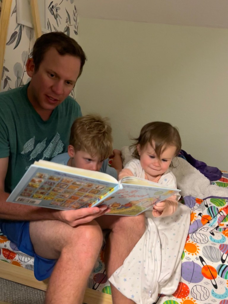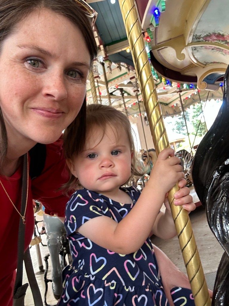 We walked back home and got right in the car to head to Elitch’s. Rode the carousel first thing then made it over to the tent where our company picnic was being held. I feel like there’s never enough time to talk to everyone, but I got to chat with a handful of people and chase the kids around for a bit before Lydi and I took off to get her a nap. I feel like my truest self is to be extremely protective of my children’s sleep, so sorry not sorry π Joey and Dempsey stayed and ended up riding a bunch of the kids rides, which I was so surprised and impressed by! I think they had a good good time. Lydia and I picked them up later on, then went home for dinner leftovers and baths. Attempt #2 to put them to bed together was way more successful. I maybe sang to them through the camera for fifteen minutes but hey, whatever it takes!