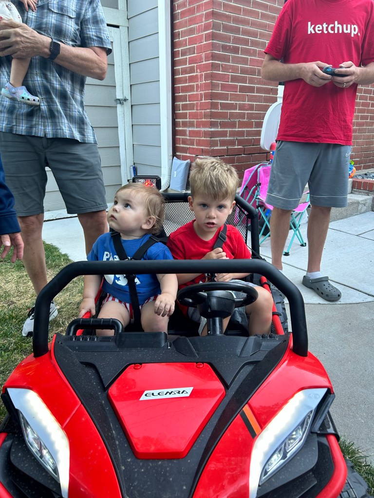 We had a pretty chill 4th of July. It is always so weird to me that we have the entire day off but no one get together until later because we want to time it close enough to nighttime for fireworks. At 3:30, I was so ready for everyone to come over at 5 😂 We started the day with waffles and then Joey took the kids on a run/to the park while I cleaned up the house and then we just hung out/played until BBQ time. We had quite the spread! Dempsey and Landon rode around in his car for sooooo long and it was the cutest. And we took a picture of the cousins and could not believe how much they’ve changed since last 4th of July!!!! We set off our little pack of fireworks around 8:30 and Dempsey was in his happy place. Lydi was NOT but she survived 😅 Such a happy time with our family!