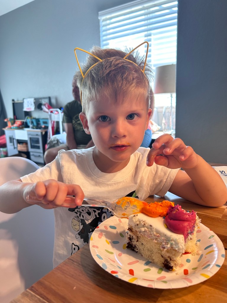 Happy Birthday, Henry! I can’t believe Dempsey’s little bestie is FOUR. The kids played, the adults wore cat ears, everyone ate cake and Lydia kept yelling out “Happy Birthday to you!” which is the absolute cutest. Dempsey was sad to leave. Nothing better than someone else’s toys, right? We got Lydia home for a nap then knocked out chores while Dempsey had some quiet time. Later on, Joey climbed on the roof to check something out then sat up there for ten minutes trying to figure out how to get back down. Never again! And then I made us some pizza. The second go in the pizza oven went much smoother. I think it all turned out pretty good! We went inside afterward to pack Dempsey’s backpack but he was less interested in that and more interested in his sister wrapping herself up burrito-style in a blanket. He laughed so hard! We got them to bed and fired up Big Brother and now here we are in a new phase of Mondays. I can’t wait to hear about his day (or not because that’s how kids are 😂) 🤍
