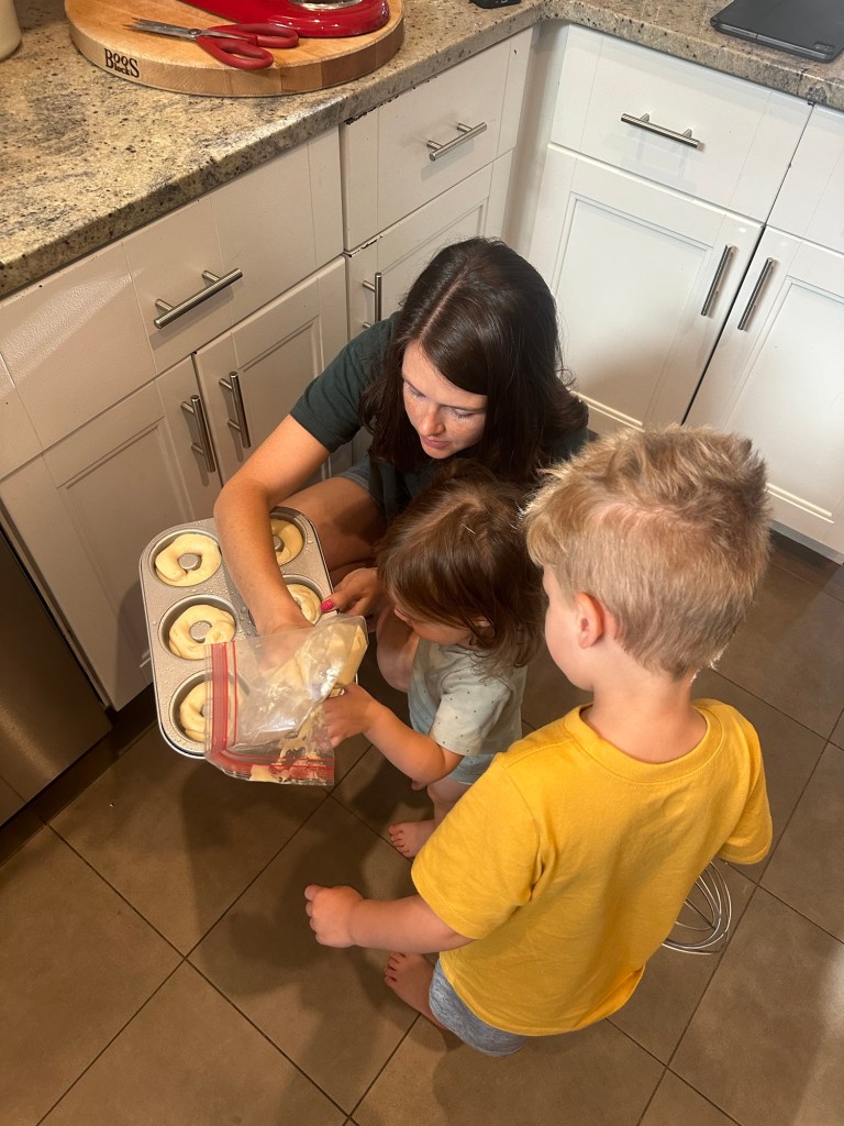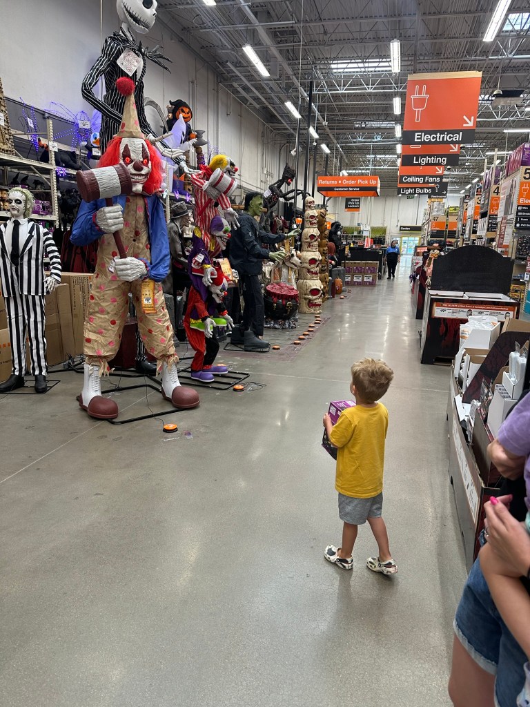 We all slept in on Saturday π΄ I woke the kids up at 7:30 and got them downstairs for breakfast. Lydia wanted to move her seat next to Dempsey’s and I love sitting across from the both of them π₯Ί I was going to take them to the park/library but Dempsey wanted to build our crafts from Home Depot (we picked up the kits when we were there last weekend), and I said why not?! He is soooo good and attentive with those, he barely needed my help! I built Lydia’s while Dempsey painted his and Lydia painted herself π They turned out so good and the kids luckily got baths right after. We got an accidental last minute invite to my friend’s daughter’s birthday party and when I floated the idea by Dempsey he seemed really into it, so while Lydia napped and Dempsey watched Bluey, I took a quick shower and then he helped me unload our grocery delivery… at the front door π Everything he took out, he told me “this is the good stuff!”