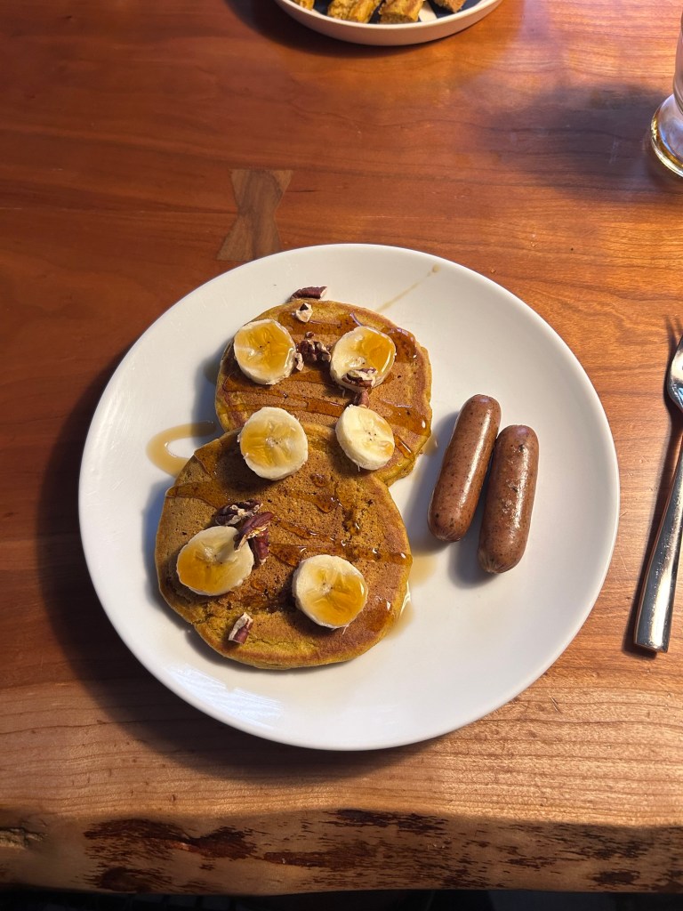 Saturday started with coffee from a new place down the street. It’s Indonesian-owned and the pandan latte I got was definitely the most unique I’ve ever tasted! I also made some pumpkin pancakes for us all on the griddle my mom passed over to me last week. Six pancakes at a time, yay! Afterward, Dempsey and I built some dinosaurs, Lydia ran around and Joey baked Dempsey’s birthday cake! It smelled sooooo good.