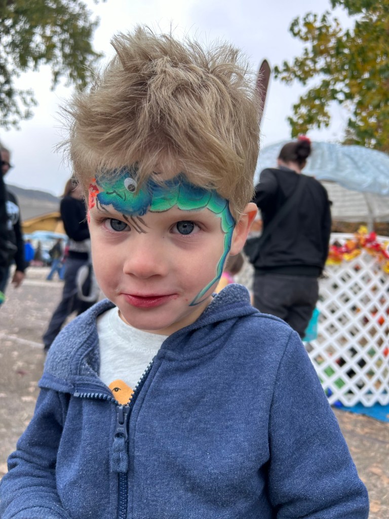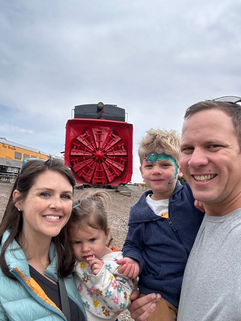 After the cakes were out of the oven and cooling, we headed into Golden to ride the Haunted Harvest Express at the Colorado Railroad Museum. I was worried it would be cold, but it wasn’t too bad. We made it there just in time for our train ride πŸ˜… Afterward, we visited a few booths, watched the miniature trains ride around the track, walked through the haybale maze, got Dempsey a face paint dragon (he spent the rest of the day re-sticking that googly eye on his forehead πŸ˜‚) and letting the kids eat just way too much candy. Lydia passed out on the fifteen minute car ride home and even let me lay her down in her crib before sleeping another two hours!