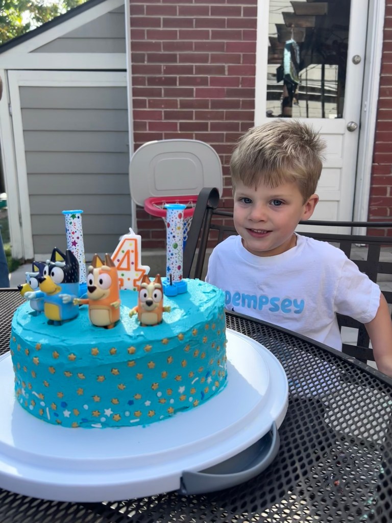 Dempsey turns 4!!!! We had such a good and fun weekend, celebrating our blue-eyed, Bluey-loving boy and I have the pictures to prove it. Not only did we have such a sweet party for him on Sunday but we got to celebrate with his class on Friday, then fit in some Halloween fun between. It truly was the best weekend. I can’t believe our boy is 4!