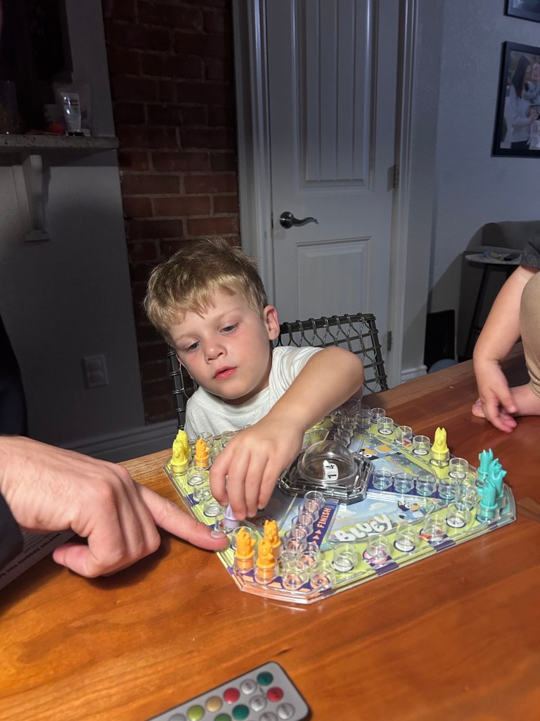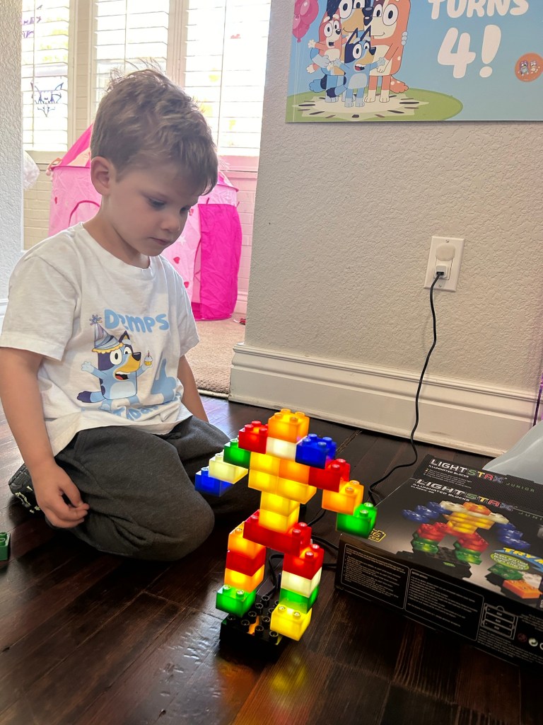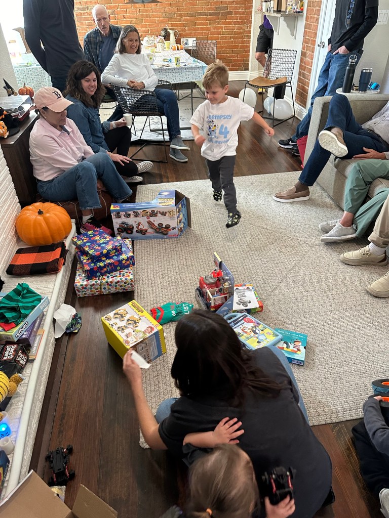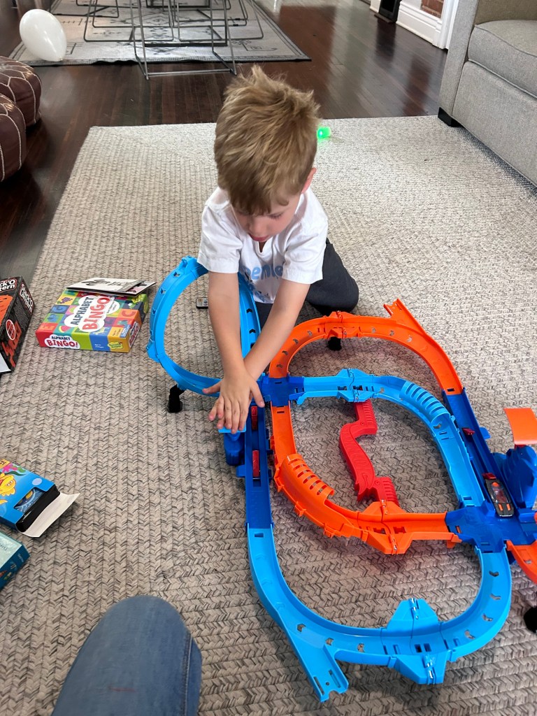 Happy 4th Birthday, Dempsey!!!! He said he wanted balloons in bed like last year, so we dumped them on πŸ˜‚ His party was at 10, so we had plenty of time to open presents, feed the kids, pick up food for the party and get ourselves dressed beforehand. I’m not sure how excited he actually is to ride his new bike, but he hopped up there easy enough! His party really was such a nice time. We ate, we opened presents, we hit the piΓ±ata (Dempsey’s favorite part!), we sang, we ate cake and we played hard. He got some really cool stuff from everyone, including his first Hot Wheels track, some light up blocks that he’s been playing with non-stop, clothes, games, books, a light up scooter and a remote control car that transforms into a track to shoot smaller calls off of. We had such a fun time with all of it after everyone left! Cooked us up some spaghetti and Dempsey was literally “mmmm-ing” over it πŸ˜‚ Ended the night with a game of Bluey Trouble that devolved into kids standing on the dining table?? Who knows! Got those babies to bed before watching SNL and crashing into bed ourselves.