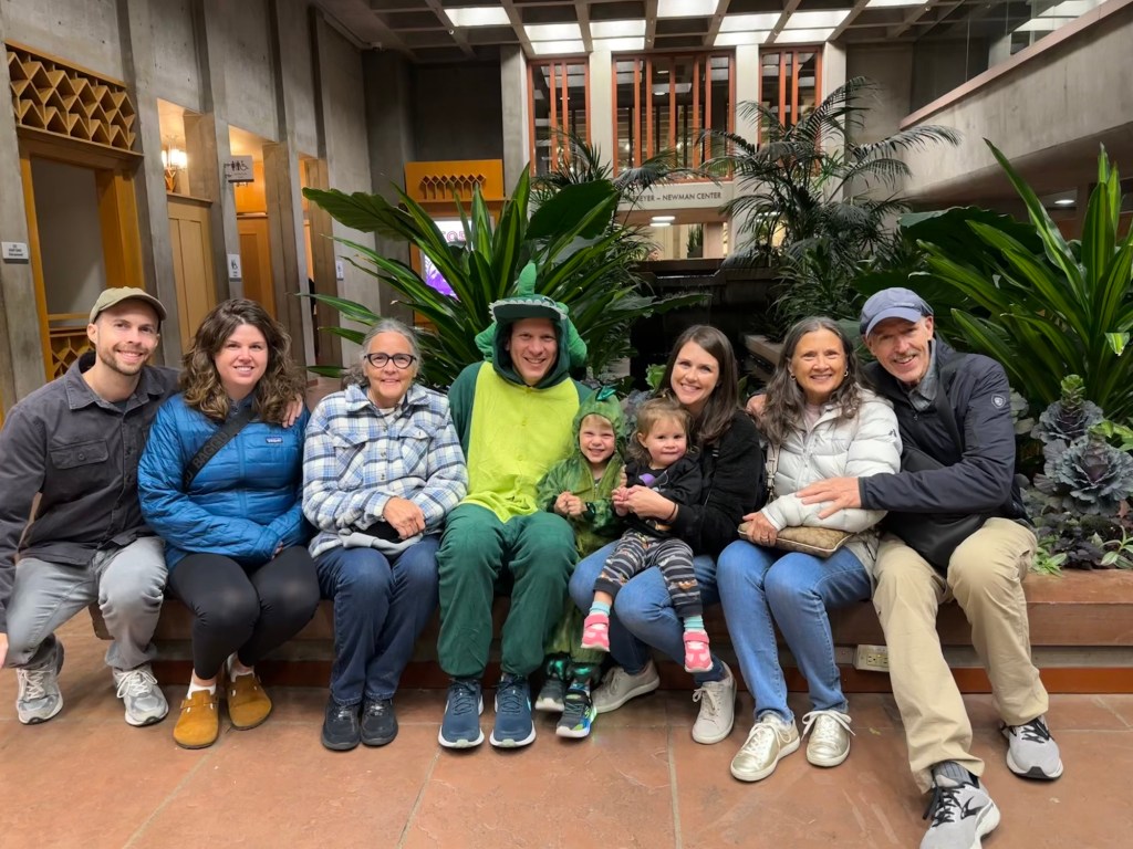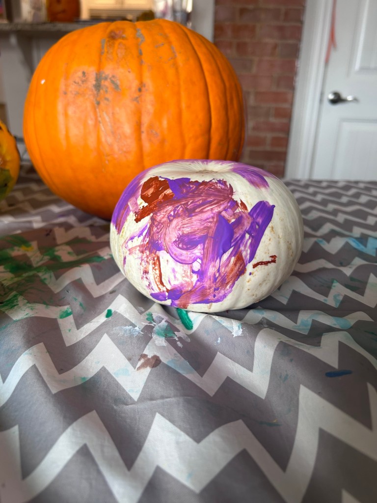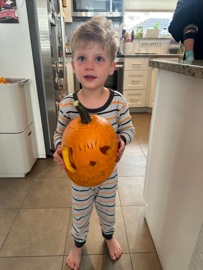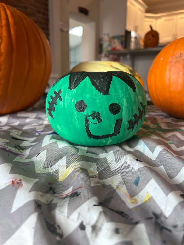 Lydia had finally managed to eat some dinner the night before so we were hoping she’d turned a corner but she was a mess all morning on Sunday. At 10:45, she was so cranky and tired, Joey just put her down for a nap! She did make it through some pumpkin painting first at least. Dempsey drew his own design and Joey helped him carve it π₯Ίπ₯Ί And he helped me paint my Frankenstein’s monster face. I love how they turned out! Once Lydia woke up from her nap, she seemed way way way better. She ate a good lunch and was back to her old self, woo-hoo! Not going to lie, the rest of the day was a rush of making salads, finishing laundry, trying to get a tired Dempsey to rest, both adults showering and me making dinner way too close to the time we needed to leave for the Botanic Gardens π± That puff pastry pumpkin on top of our chicken pot pie was definitely underbaked but what can you do?