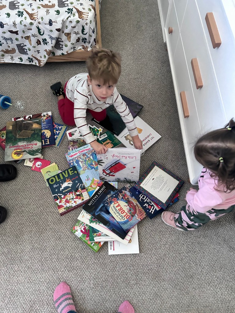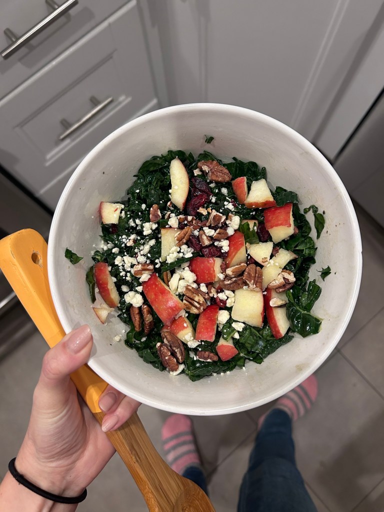 Started Sunday with an egg sandwich and coffee with rosemary-vanilla syrup and oat milk, yum! Afterward, we got out allllllll our Christmas books and then I took off to meet my mom and the movies. Wicked was so good!!! The world is so fully realized and Cynthia and Ariana were amazing! My only criticism is that sometimes a talking goat is wearing glasses and it’s hard not to find that silly π We had a great time! Back at home, Joey and the kids had picked up our turkey and then made blueberry muffins! I was so impressed and I got to eat one as soon as I got home. It was the best blueberry muffin I’ve ever tasted! Dempsey cuddled right up to me on the couch too π₯° We had a pretty cozy and lazy rest of the day and then the kids helped me make dinner. Dempsey makes a mean salad. We read some of those Christmas books and got the kids to bed, then watched the Holiday Baking Championship before going to bed ourselves.
