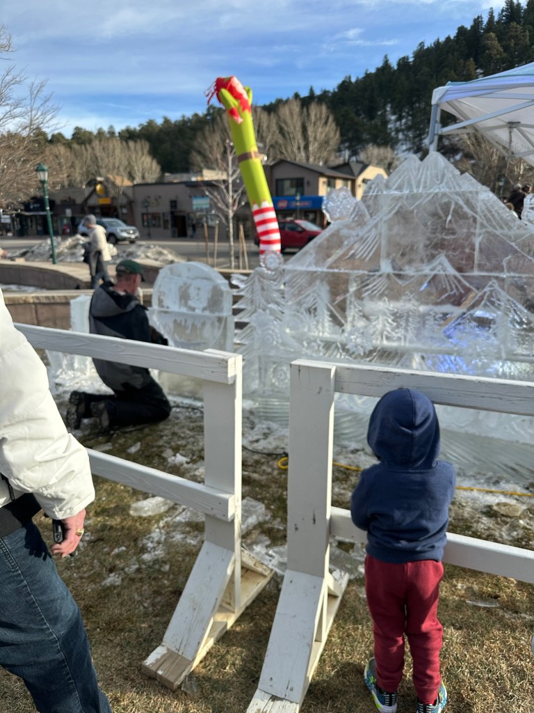 Lydi took an early but good nap, so around 1:45, we headed into town for taffy and the snowman festival. Dempsey only told us 100 times that he did not want to see Santa 😅 Lydia likes candy way more than a two-year-old should, so she got to try some taffy and the festival was actually pretty cute! We DID see Santa but Dempsey sat on my lap far away from him, so it worked and then the littles walked around, danced to the holiday music they were playing, watched the ice sculptor and made it to the activity tent at the end. It was small and crowded in there but Dempsey made a couple of ornaments and even got a elf shoe glitter tattoo that I don’t think is ever coming off 😂