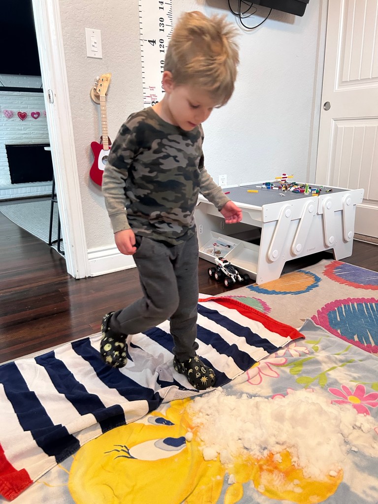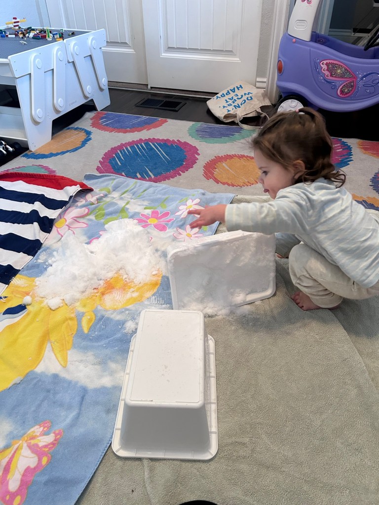 My mom always made Cream of Wheat on snowy days, so I made some for the kids on Sunday morning. Dempsey had three bowls and Lydia put a spoonful in her mouth and spit it right back out π I got my hair cut mid-morning then came home and made salads for the work week. Once Lydia was back up from her nap, I let the kids bring snow inside. It actually lasted longer than I had expected and kept them entertained for a solid fifteen minutes π Roasted a chicken for dinner and is there anything more domestic-feeling than roasting a chicken for dinner?? We “ended” the night with popcorn and Frozen II and then, after the kids were in bed, we watched Fargo and went up to bed ourselves.