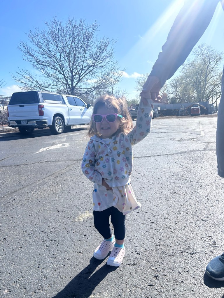 After Lydia’s nap, we got everyone ready and loaded into the car to head to our best friends’ house! Dempsey absolutely fell asleep on the way there, while Lydia entertained us by sticking a gummy to her face π We had a really excellent dinner (literally love it so much that Mason always wants me to sit next to him at the table π₯Ί) and then the kids had a BLAST playing outside together. I don’t know how not to have anxiety any time kids are playing near a street, but I’m trying my best to teach them how to be safe. We all had rainbow popsicles then chased our two around before finally getting them in the car to head home. I knew Lydia was tired because she kept begging me to hold her on the drive. Got them to bed then basically went right to bed ourselves. A fun fun night!