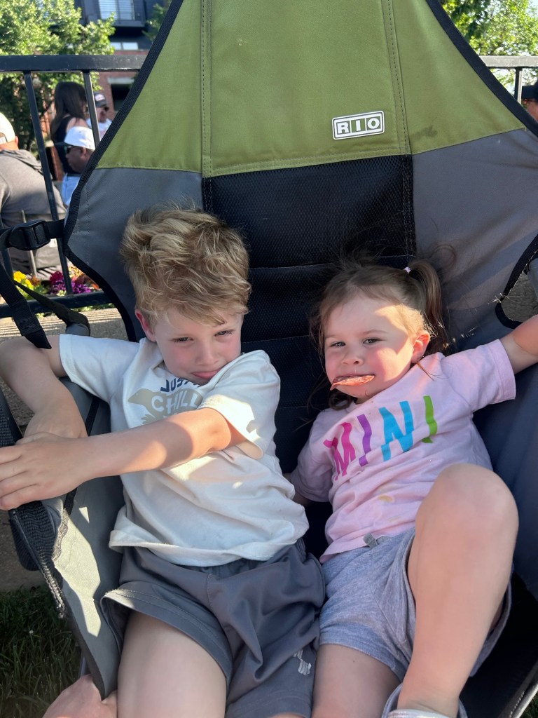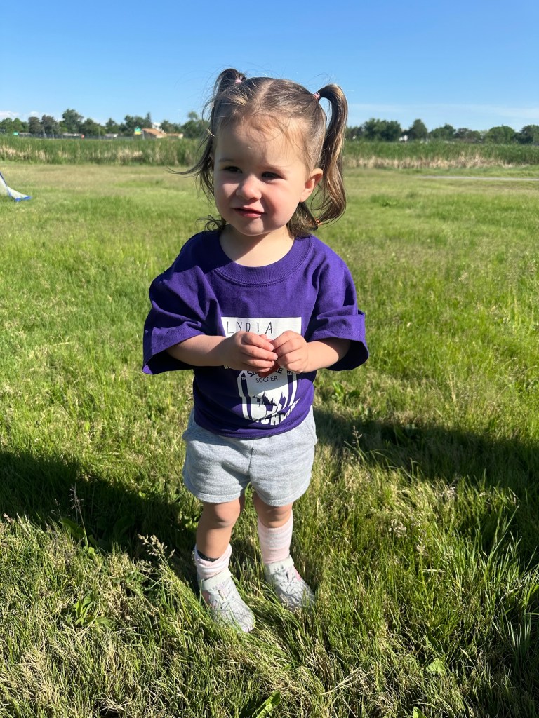Look, I was fully ready to enjoy a soccer-free summer after literally dragging Dempsey every week last year but Joey really wanted Lydia to play, so here we are. She’s definitely my more outgoing child, but even she was feeling very shy on her first week. She kept begging me to hold her π₯Ί We did our best. She did tell me at the park afterward “I not cry, Mommy, I kick the ball” for next week, so we’ll see! Dempsey had a good time catching strangers in his fishing line and when I asked if he was going to join the team, he told me, “I’m going to join the team of sitting down” πππ They played at the park with Grandpa Steve and Lorna for a loooong time afterward and then we headed home for lunch and Lydia’s nap.