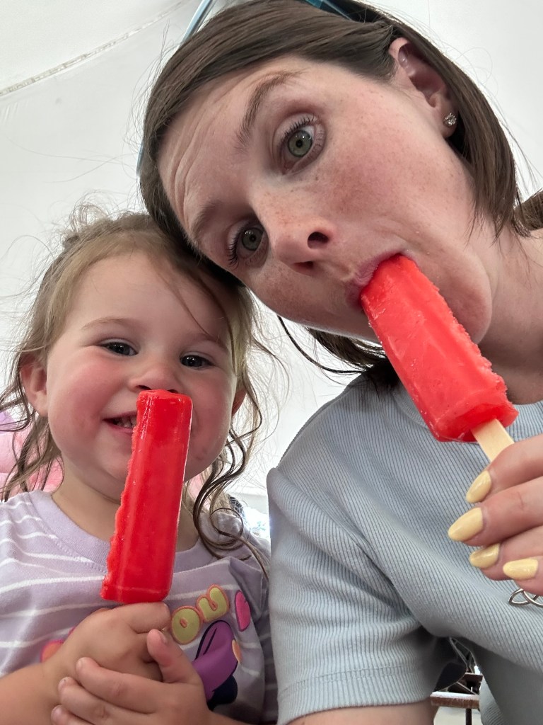 Joey had a 7 AM tee time on Sunday, so I let the kids sleep in while I worked out then we all had breakfast — I made myself a latte with that vanilla blueberry simple syrup! — and headed to the farmers’ market. Dempsey is always on the lookout for the root beer flavored popsicle and they had it this week! Lydia only sort of made a mess eating hers 😂 It was already hot when we got back, so I let them run through the sprinkler and it truly felt like summer. Joey came home while we were eating lunch and the kids gave him their gifts 💙 I put Lydia down for her nap then we did a few things to get ready for visitors and everyone showed up around 3. Joey wanted fajitas and they turned out so good!!! Had dessert a little bit later then went for our walk and made a stop at the fairy garden 😍 It really was such a good night with our family. I hope you all had a good one too!
