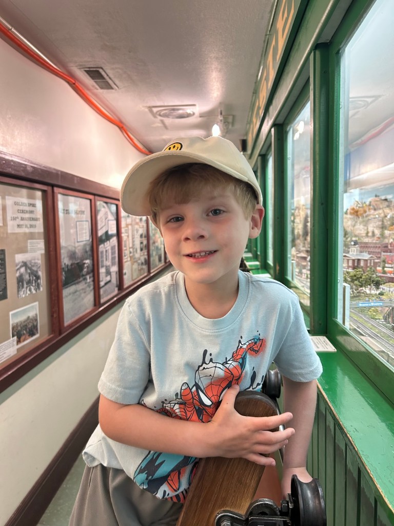 I wanted to take advantage of Dempsey’s day off from school, so he and I met Auntie Lauren and Landon in Golden and looked at the indoor exhibits while we waited for Chad, Lori and the girls to meet us after their art class. Then we all rode the train together! I think the kids all really liked it. It was a 100 degree day but we still had a lot of fun looking through all the trains outside and then I helped load up the kids in the car and sent them off to Grandma’s while I went home to work.