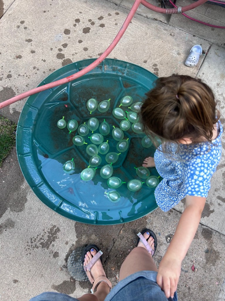 Once they were back home, we filled up some water balloons and ordered pizza from Blue Pan. The kids were too busy playing to actually sit down and eat more than a few bites but Joey and I thought it hit the spot! A song from Minecraft has been popping up on Spotify when we listen to music, so we decided to have a movie night and watch it. I don’t think the kids understood at all what was happening but they seemed entertained anyway. We still need to finish it at some point. Got the kids to bed then went to bed shortly after.