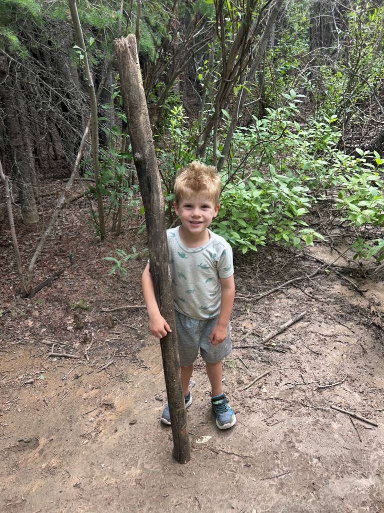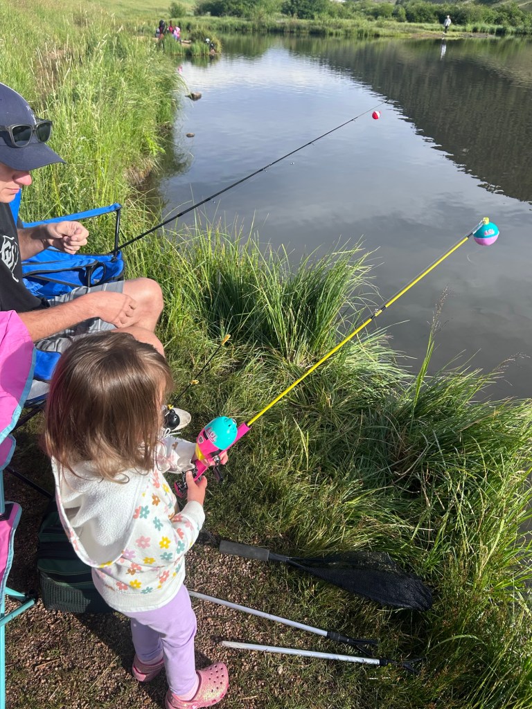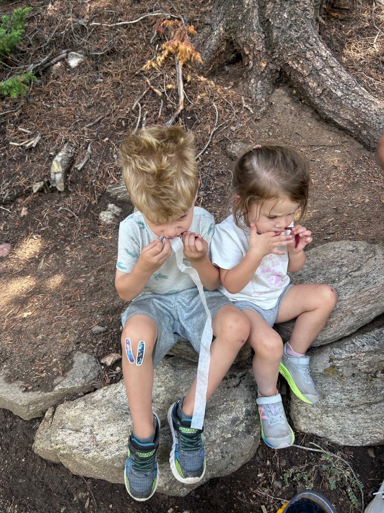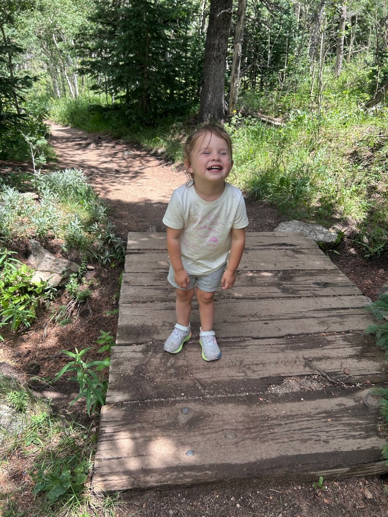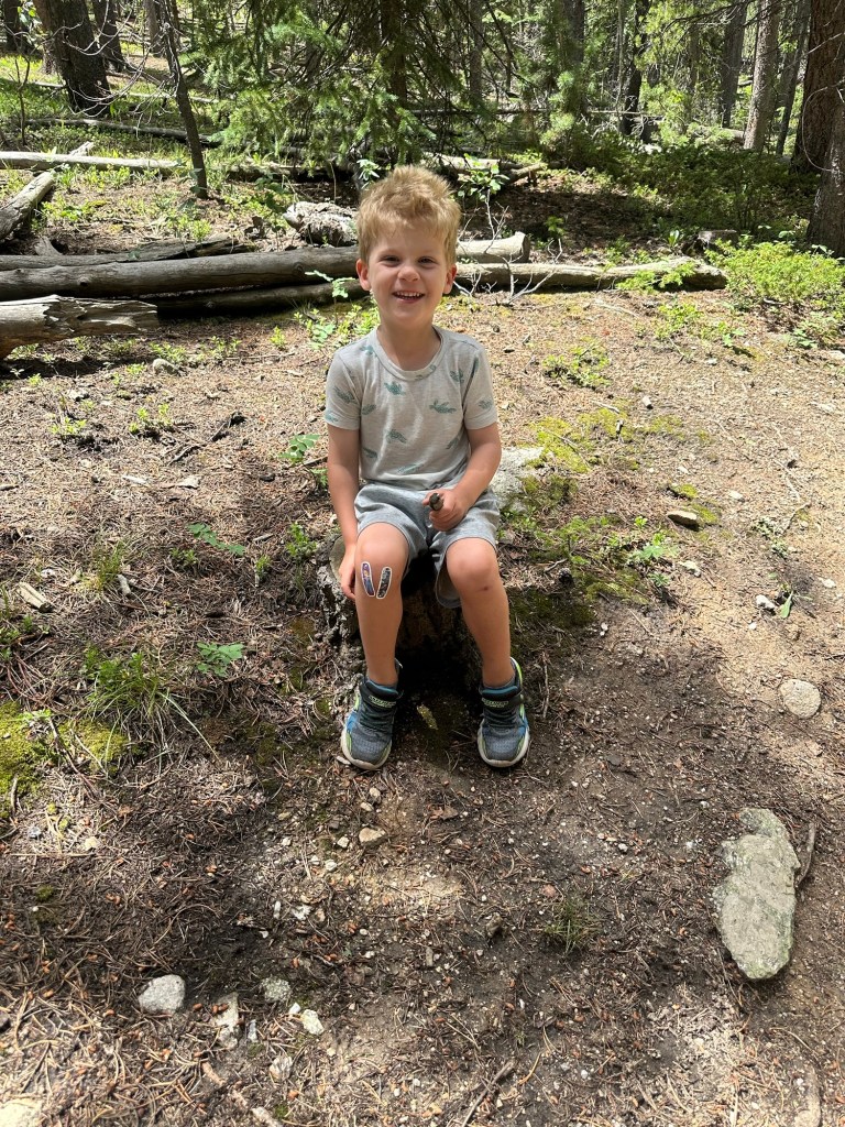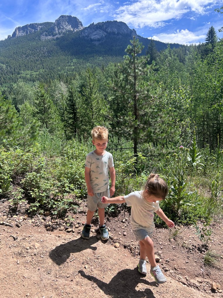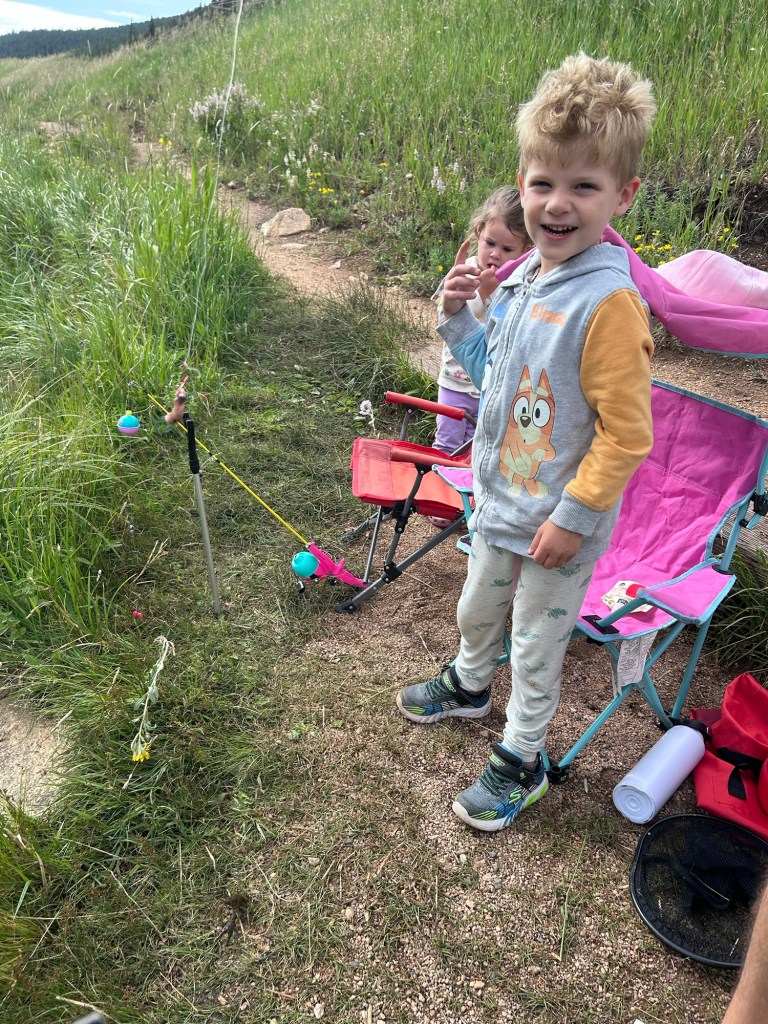 Saturday adventuring! We were up and at ’em to head to Golden Gate Canyon State Park for some fishing and hiking. I literally don’t know how Joey has ever taken either (or both) of them fishing on his own because I was chasing them around on the shoreline the entire time while he made sure everyone’s pole was cast and propped correctly. We did lure them into being still for a second with snacks and we were all so excited when we thought Dempsey had a bite but he reeled in a… crawfish 😂 I laughed so hard. Unfortunately, that’s all we caught but it sure was a beautiful morning out at the pond. We told Dempsey we were going to hike afterward and he was NOT about it, but distraction and re-phrasing goes a long way with that kid because we made it out to the trailhead and didn’t hear another word about him wanting to go home. We made it through the whole loop! I was seriously so proud of both of them!!!!! And the weather was perfectly mild and cloudy. We had a great time.
