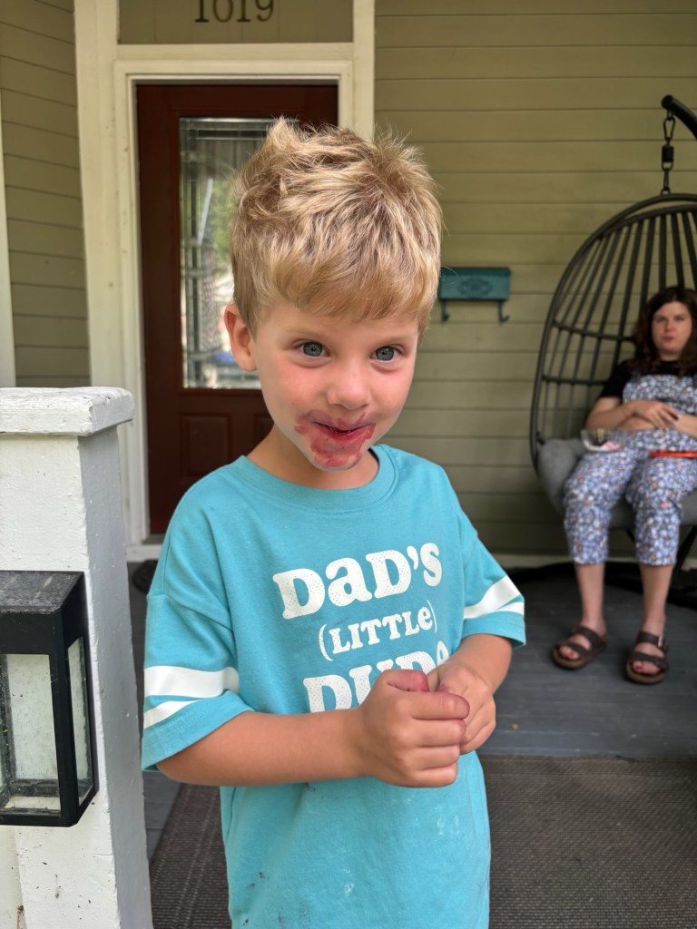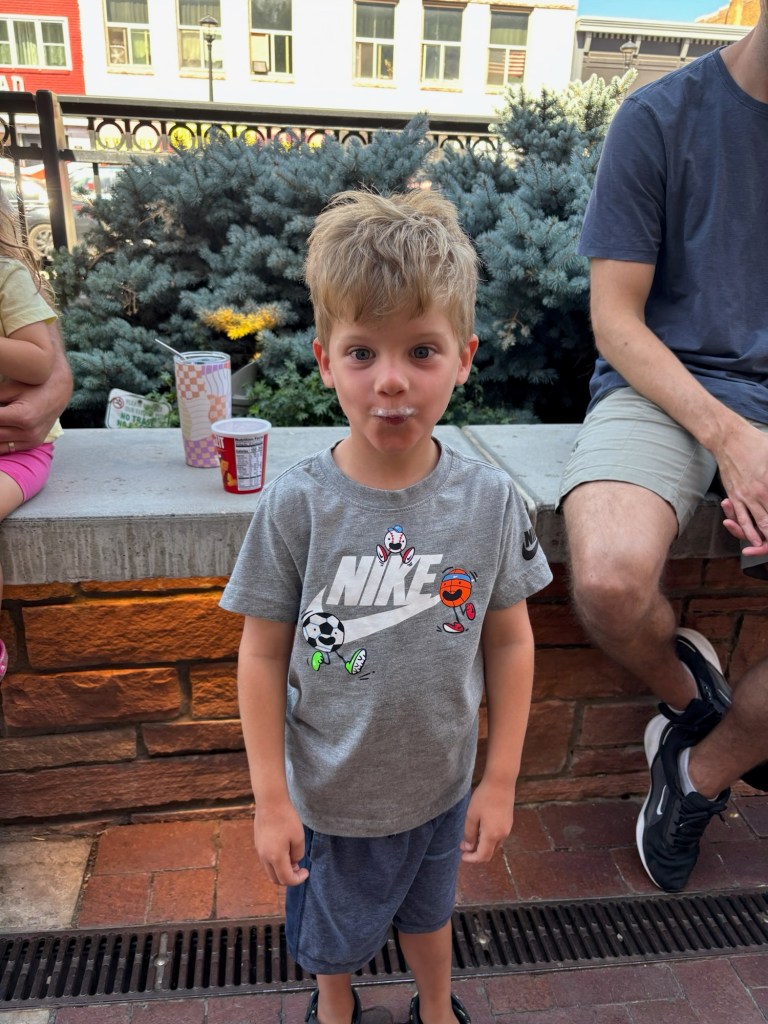 I love my little bit of solo time with Dempsey on Friday morning, after Joey and Lydia leave and before I drop him off at school, and look what I found him flipping through! 🥺😍 I can’t wait until we get to read those together. After his drop off, I had a dentist appointment then worked from home and made myself a BLAT. We had planned to head to the Tennyson Street Fair that evening but it was on and off raining and Dempsey wasn’t feeling well, so we had a movie night and watched the first half of Wicked Part I instead. Dempsey was asking three billion questions but it seemed to hold their attention pretty well. Got them both to bed, did a bunch of prep for the next day then watched Thursday’s episode of Big Brother before our own bedtime.
