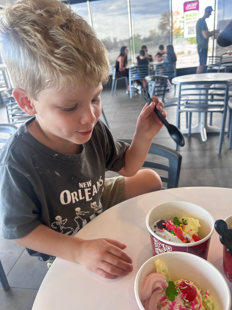 I got in a workout before Lydi woke up on Sunday and then we all had breakfast and hung out for a bit before going to pick Dempsey up. I think he had a good good time and the yard is looking great. Can’t wait to see it all set up and lit up on Wednesday night when we’re over there! The kids ate lunch and I made salads before Lydia’s naptime and afterward, we went out for froyo! Remember when that was all the rage?? Dempsey has been asking for weeks to get “frozen yogurt with gummy bears” not knowing that you can actually do that. I think they had a good time but they were also chasing each other around, screaming and spilling yogurt everywhere ð Back at home, Joey started dinner and I took the kids outside to play and run off their craziness. Tomato soup and grilled cheese for dinner and then we sprinted through bath and bedtime to get them down before the BB finale came on ð What an incredibly lame season, I didn’t really like anyone and the winner was undeserving if you ask me. What can you do? I hope everyone has a good week and is ready to ring in October!