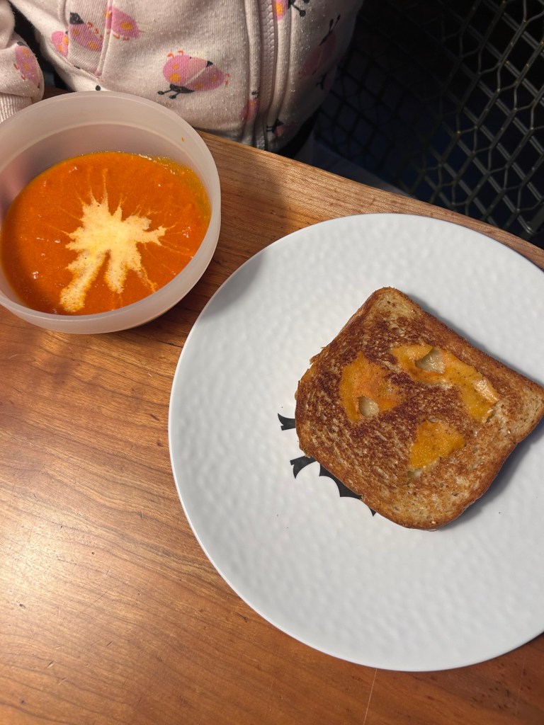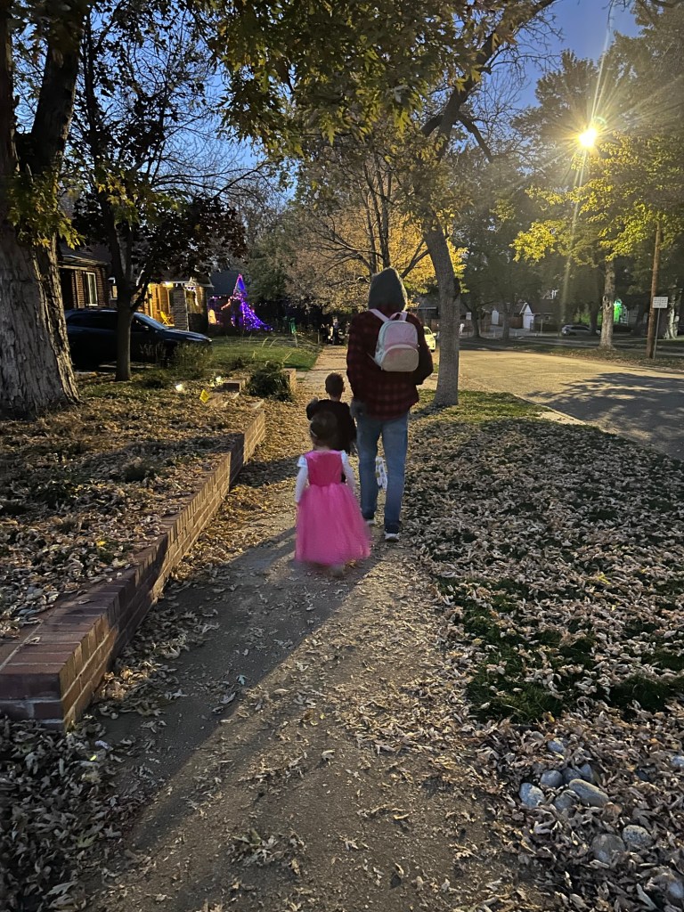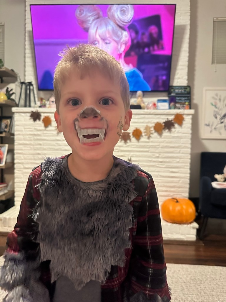 Dempsey’s school party was as chaotic and overstimulating as you’d expect 😅 Leave it to him to find all the skeletons in the classroom to play with. Afterward, we went home for a quick and early dinner of grilled cheese and tomato soup, then headed out to trick-or-treat shortly after 6. We hit up all of our close neighbors, then headed down a nearby street and Lydia was having the time of her life! Dempsey mostly inspecting everyone’s porch decorations. They both hugged and kissed that Count Mickula blow up 😂 They were ready to call it quits shortly after 7, which was perfect because it meant we got to hand out candy to a few groups of trick-or-treaters and get the kids to bed on time. Dempsey got those vampire teeth and I think he liked them more than all the candy!