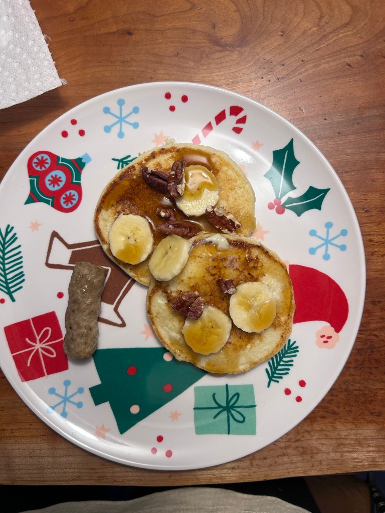 Saturday started with ricotta pancakes and then Joey took both kids to Lydia’s swim lesson, Target and my sis’s, while I made a sweet potato pie and started on a Japanese cheesecake. We headed over to Steve and Lorna’s around 3:30 and had a nice time, until, in the middle of unwrapping gifts, Lydia just threw up! Was hoping it was a fluke but then she did it again and we made a quick exit. She made it home but was up every half hour all night. Poor baby! And poor Joey and I, we never even got to try the desserts we spent all day making 😅