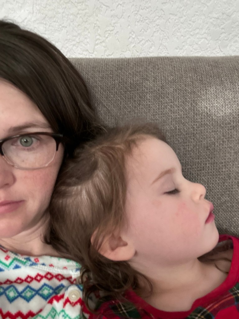 Sunday was a long one, for Lydia and for my butt, as we sat on the couch all day. She couldn’t keep anything down and was so tired 😢 Meanwhile, Joey took Dempsey to the children’s museum, did 100 loads of laundry, went for a run, made salads, cooked dinner and cleaned up the kitchen. I feel like time works differently for him than for me 😂 Was really really hoping Dempsey would be spared but he threw up in the middle of the night last night. Lydia is a little better but still tired. I’m crossing all my fingers and toes that we make it to our Christmas celebration on Thursday. Wish us luck!