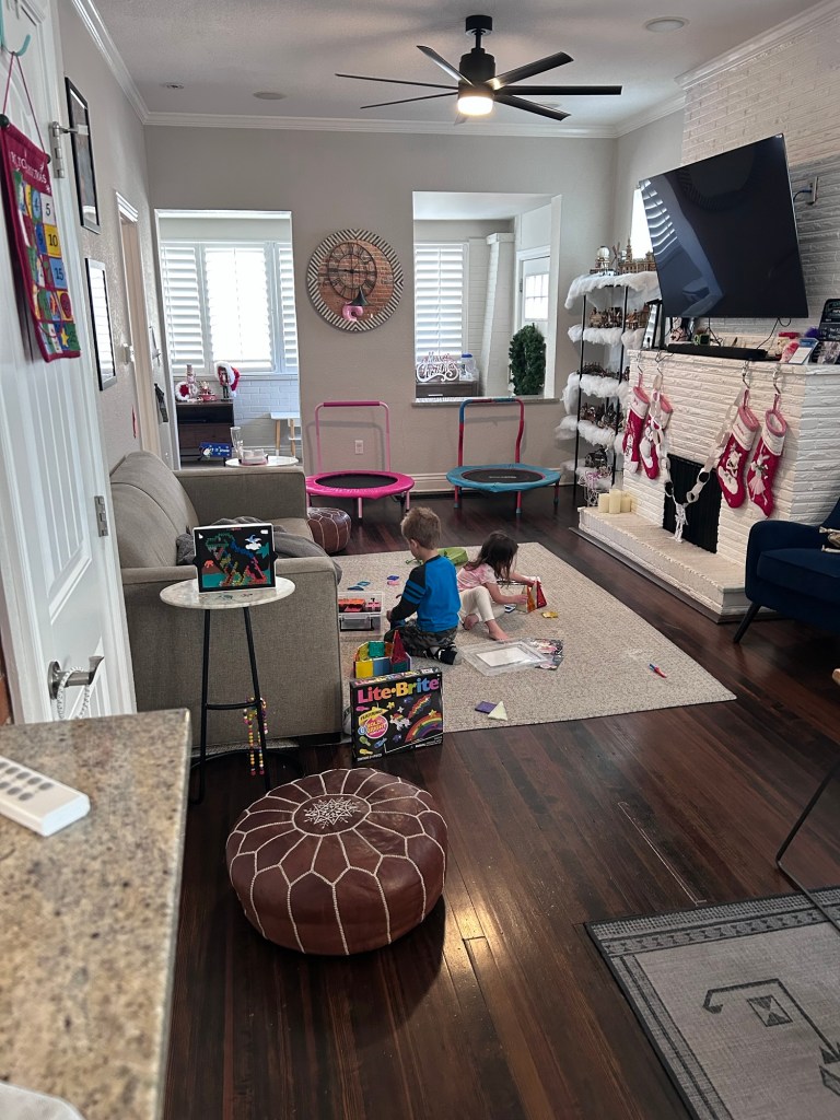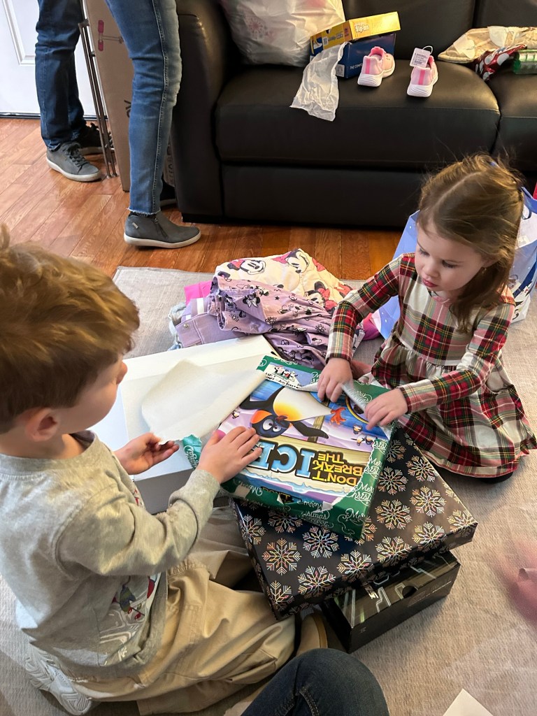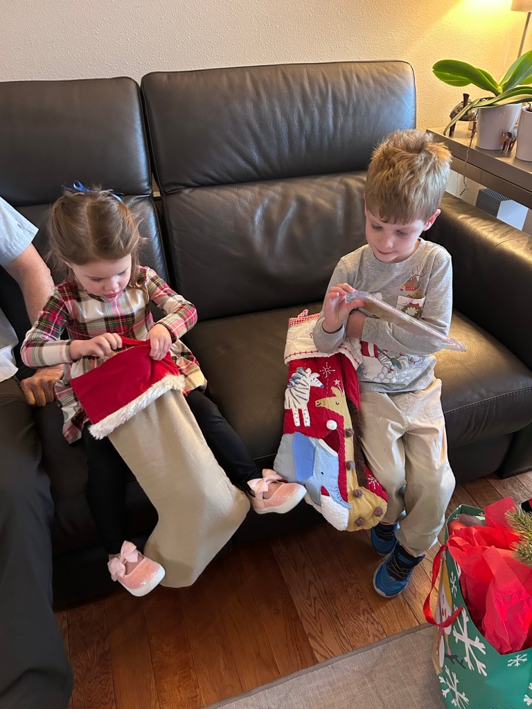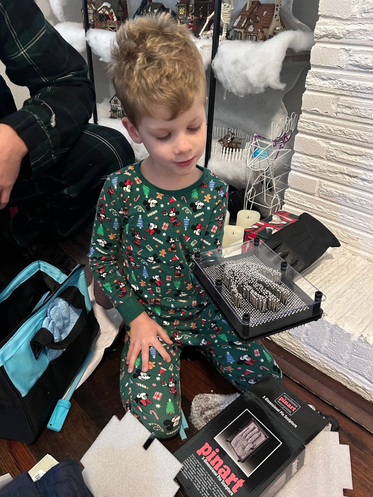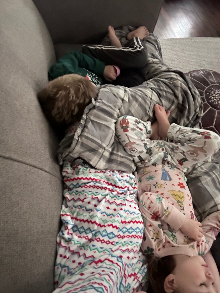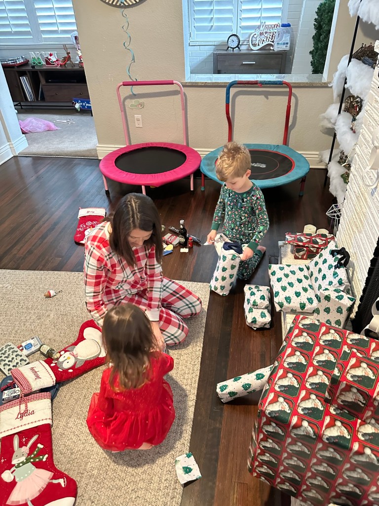 Sunday morning, we got to go over to Grandma Lori and Chaddy’s for our Christmas celebration with them. Their Elves on the Shelves (is that how I should write that if there’s two of them??) had headed back to the North Pole but left 100 Santa hats hidden around the house, so the kids were busy with that for a while, then we all ate breakfast, before digging into the mountain of presents. I think I need a second house to store all of the cool stuff they got, but I’m grateful for all the people who love them so much! Back at home, just the chaos of unpackaging new toys, taking down the Christmas village, making salads and cooking dinner. I got an Instant Pot and cooked some chickpeas in there. I’m excited to use it again tonight! Stuffed shells for dinner but Dempsey literally cried when I asked him to just try A bite π€·ββοΈπ