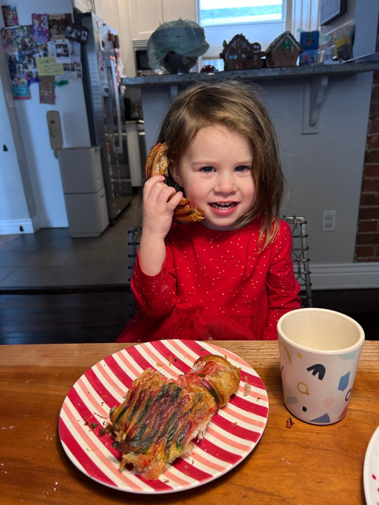 Christmas Day was pretty good too. Lydi was so so excited to see her presents from Santa — she got her “ballerina shoes” π₯Ή — and Dempsey, who normally doesn’t react in big ways like his sister, had the sweetest little smile when he saw his car transform into Bumblebee. He said his favorite present was a jar of capers though π He is definitely my son! We had giant pastries from Blackbox Bakery for breakfast and hung out for the rest of the day — we did make it outside for a bit, so Lydi could try out her new helmet, and man did it feel nice out there! I also worked on my sourdough rolls, which had been rising overnight. Final product shown above, but they turned out so good! Another highly recommended recipe: Soft Sourdough Rolls from Hearbeet Kitchen.